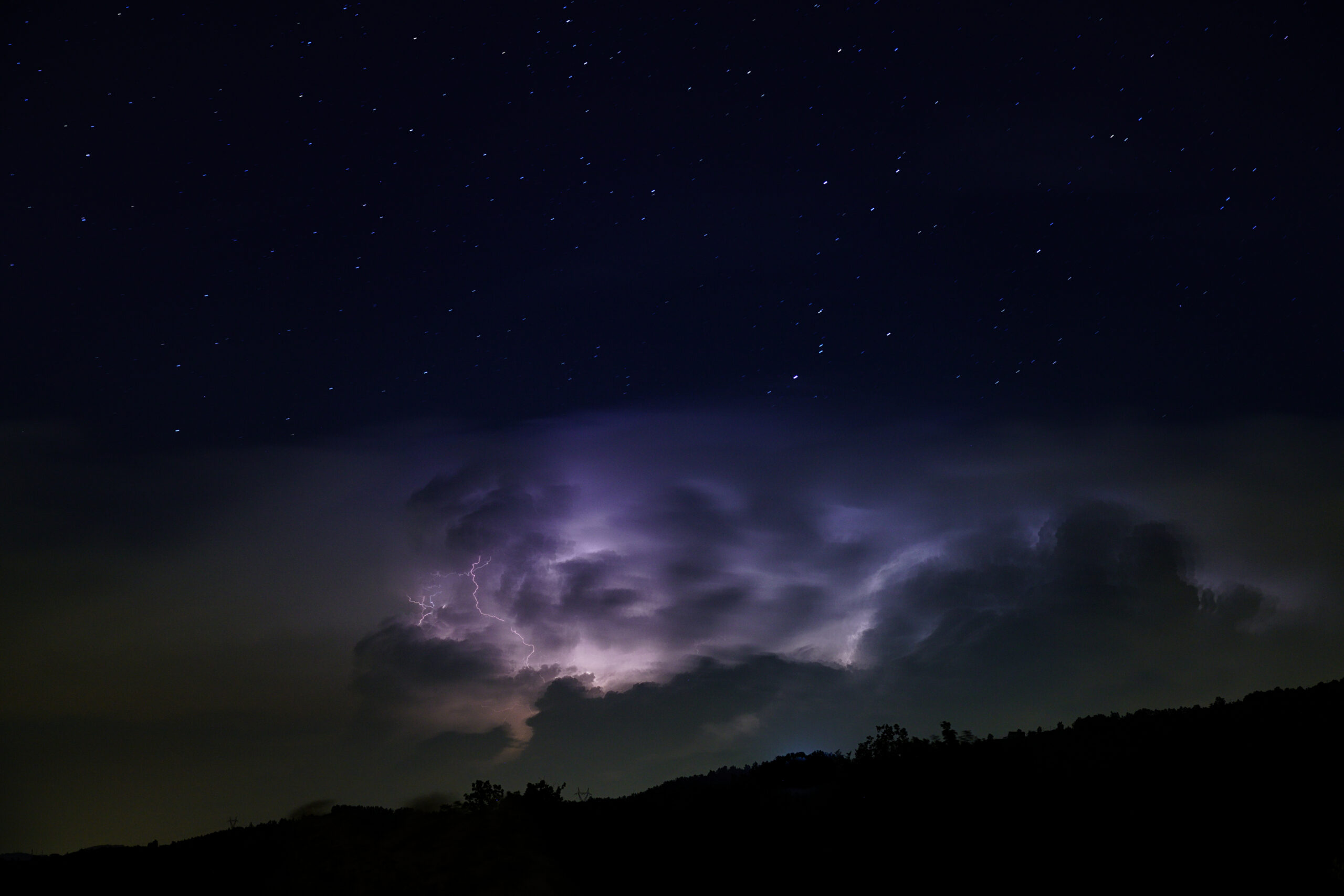Stelle e fulmini ripresi presso Bettola (PC).
