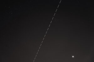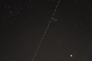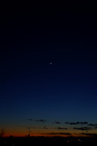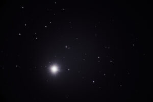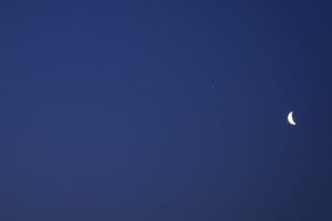 Una bella congiunzione tra la Luna e alcuni oggetti celesti: Giove, Marte, Urano, Pleiadi e Aldebaran nella costellazione del Toro; immagine ripresa a Mulazzano (LO) poco dopo il sorgere della Luna il 30/7/2024.