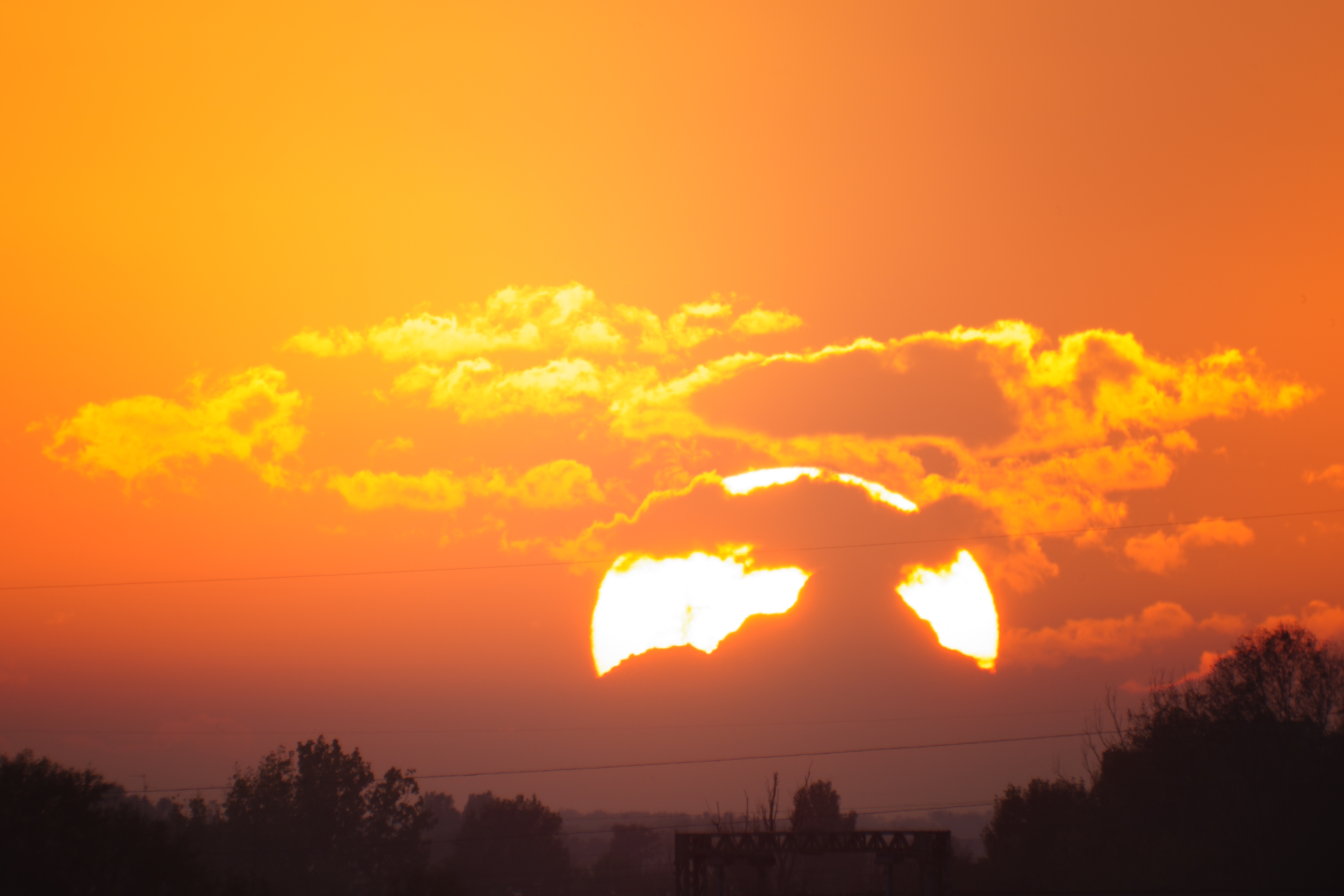 Tramonto dietro il Monviso (3.841 m), immagine ripresa su cavalletto da circa 190 km di distanza.
