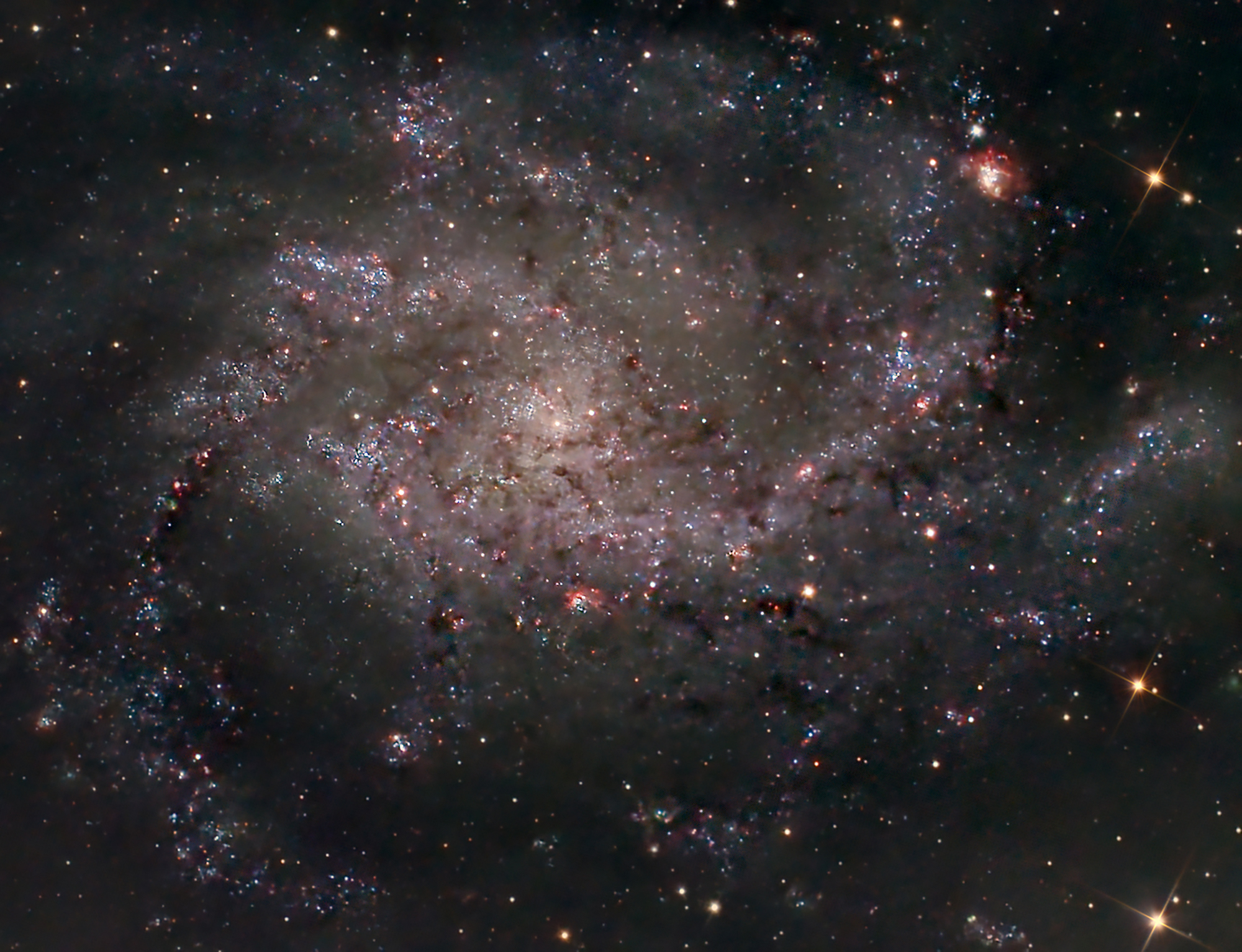Questa immagine ritrae la celebre M33. Trattasi di galassia a spirale sita nella costellazione del triangolo, a circa 3 milioni di anni luce dalla Terra.