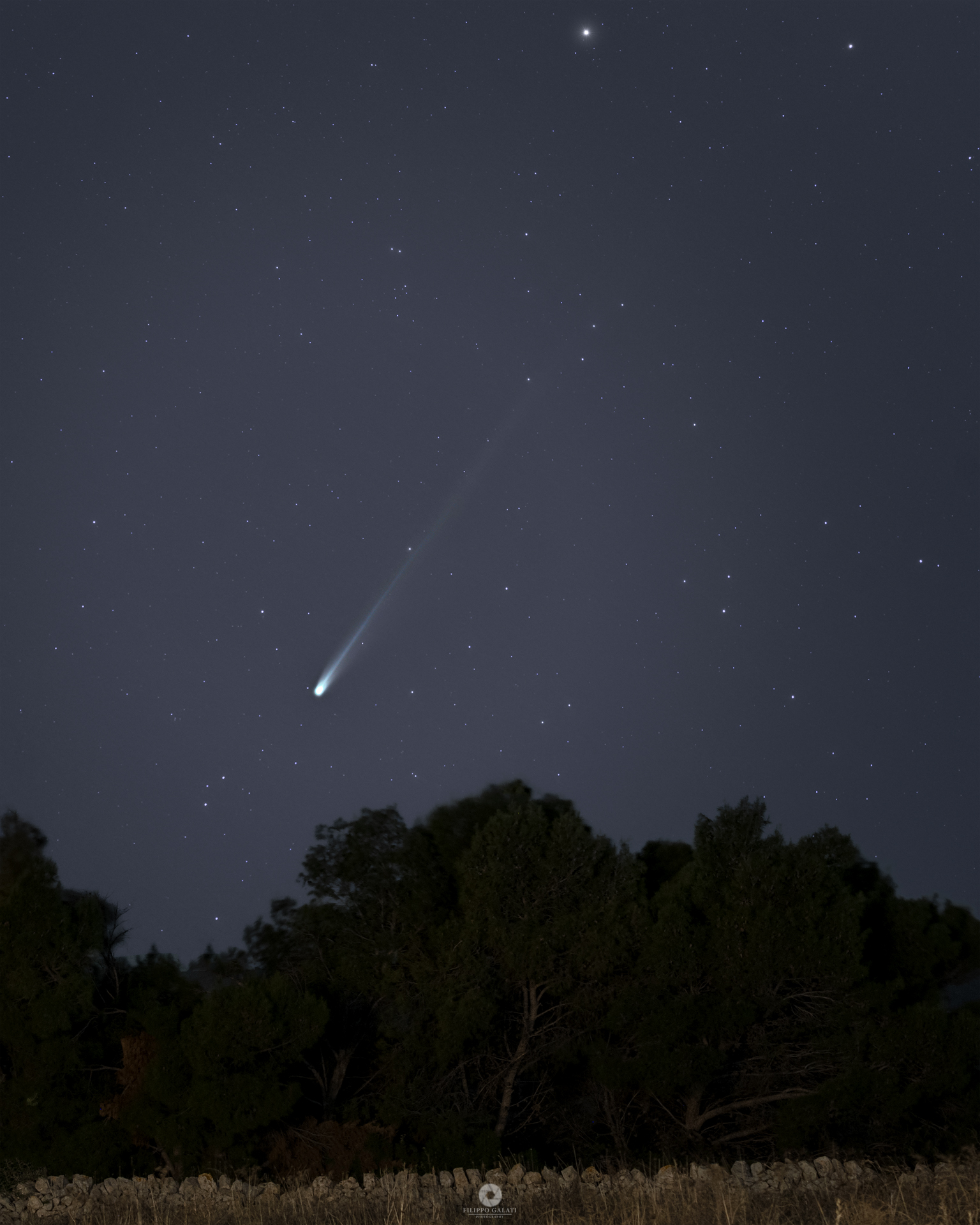 In queste sere il cielo regala uno spettacolo raro: la cometa C/2025 A6 Lemmon, con la sua chioma brillante e la lunga coda che si estende tra le stelle. Un frammento di ghiaccio e polvere che viaggia da milioni di anni per farsi vedere solo per pochi giorni, difatti ritornerà nei nostri cieli tra circa 1350 anni. Osservare e fotografare le comete è sempre un’emozione unica, parliamo di veri e propri viaggiatori del tempo che ci ricordano quanto effimera sia la nostra presenza in questo universo. Sony ILCE-7M3 + Sigma 100-400 [100mm] 30sx60 f/5 ISO 1600