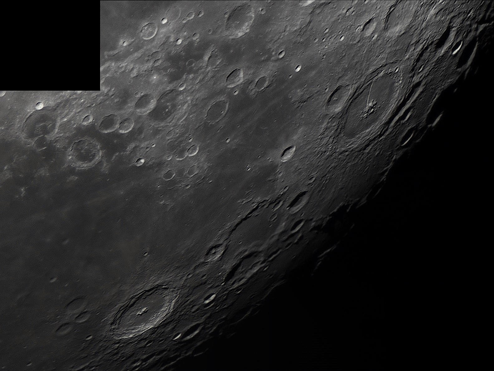 La passione e la follia possono battere un meteo impetuoso. La sera della ripresa il meteo riportava: Nuvolo con probabili precipitazioni, ma seeing ottimale. In pratica la classica vita dell’astrofilo, ma con seeing previsto 5/5 non potevo non provarci. In tre ore sono riuscito a fare solamente due riprese di due minuti ciascuna tra una nuvola e l’altra, e alla fine smonto velocemente perché inizia a piovere, ma il risultato ne vale la pena. I due crateri Langrenus e Petavius con una definizione da lacrimare per la felicità. Langrenus: Diametro 131,98 Km Petavius: Diametro 184,6 Km Autore: Mondello Francesco (Gruppo Astrofili Catanesi) Data e luogo: Gravina di Catania 2025-09-09 ore 1:38. Strumentazione: Astrophysics starfire 127, Barlow Celestron ultima 2X, ASI 224. Software: Firecapture, Autostakkert, Registax6. Mosaico di due pannelli