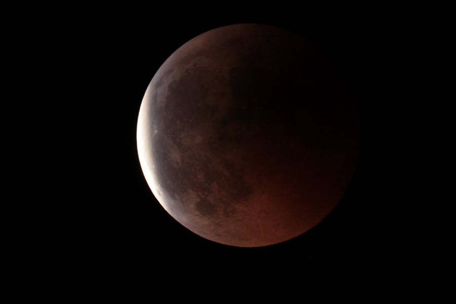 Foto scattata durante l’eclissi di luna del 15/06/2011 ritrare lo spostamento della zona d’ombra subito dopo la copertura totale, e consente di apprezzare la differenza di luminosità tra la parte ancora in ombra e quella che torna ad essere illuminata dal sole, oltre ad offrire la vista delle diverse colorazioni, dal nero al rosso e poi al grigio e al bianco brillante, regalando una buona percezione della profondità.