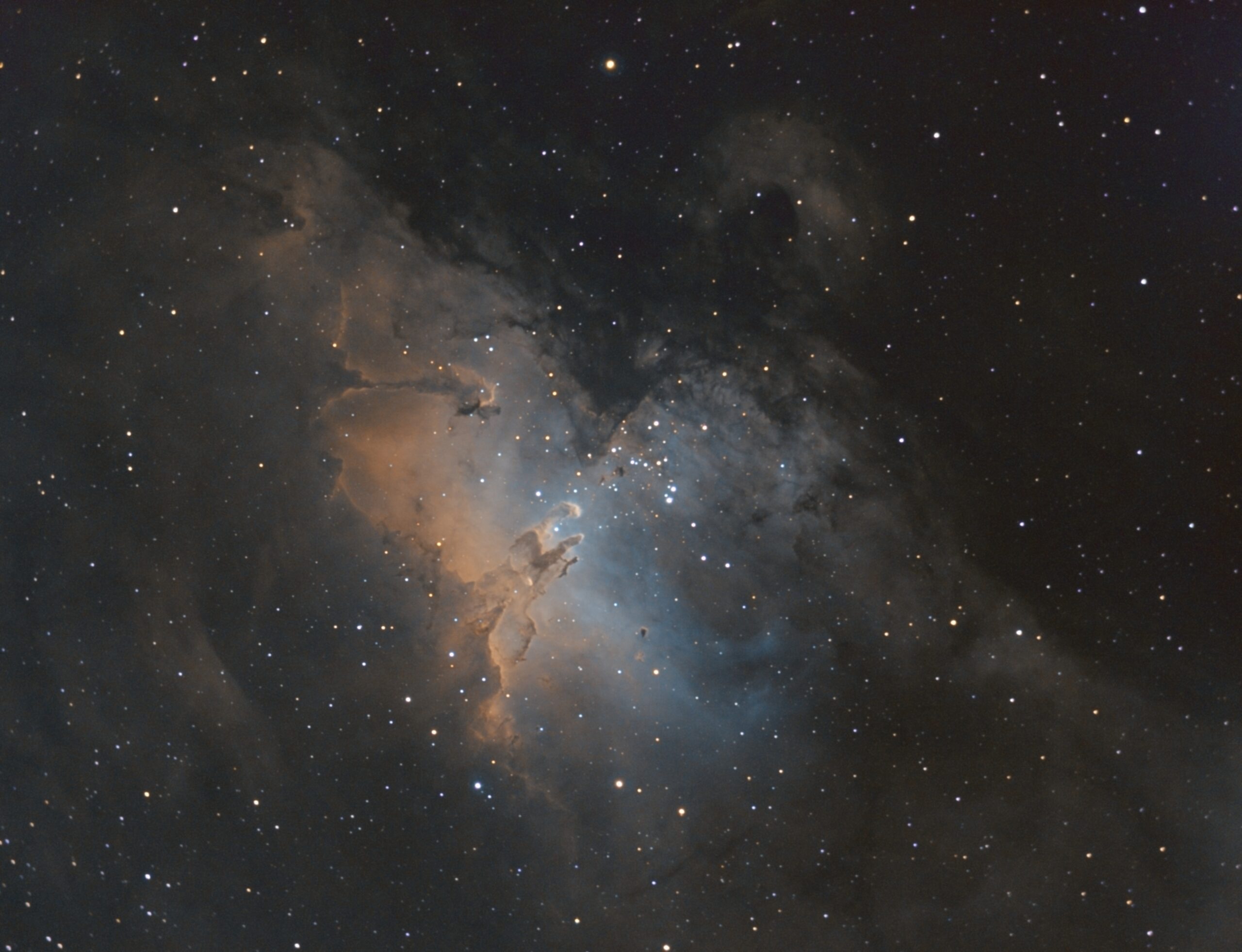 La Nebulosa Aquila (M16) ripresa in Hubble palette. Ben visibili i pilastri della creazione.