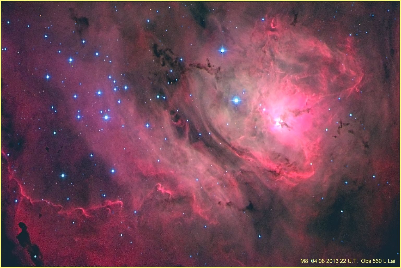 Nel cuore della nebulosa M8 deve esserci proprio un bel caos tra nebulose ad emissione che riflettono varie situazioni e nebulose ad assorbimento che cercano di intrufolarsi fra i gas.