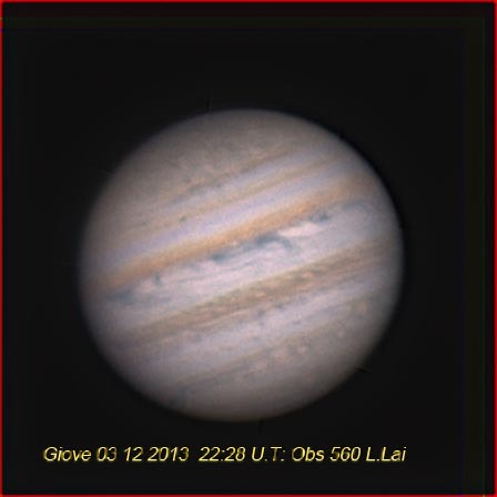 Si avvicina l’opposizione Di Giove del 29 Dicembre e ormai il pianeta si presenta con un diametro di 45 secondi, molto prossimo al diametro massimo.