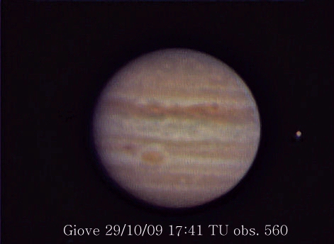 Giove con il satellite Io e macchia da chiarire. Giove con il satellite Io in una delle ultime immagini di questa opposizione. Niente di particolare, però ad est della macchia rossa(a sinistra) è emersa una macchia scura molto evidente che non corrisponde ad ombre di satelliti. Qualcuno ha notato variazioni di questa macchia? Ci sono immagini precedenti?