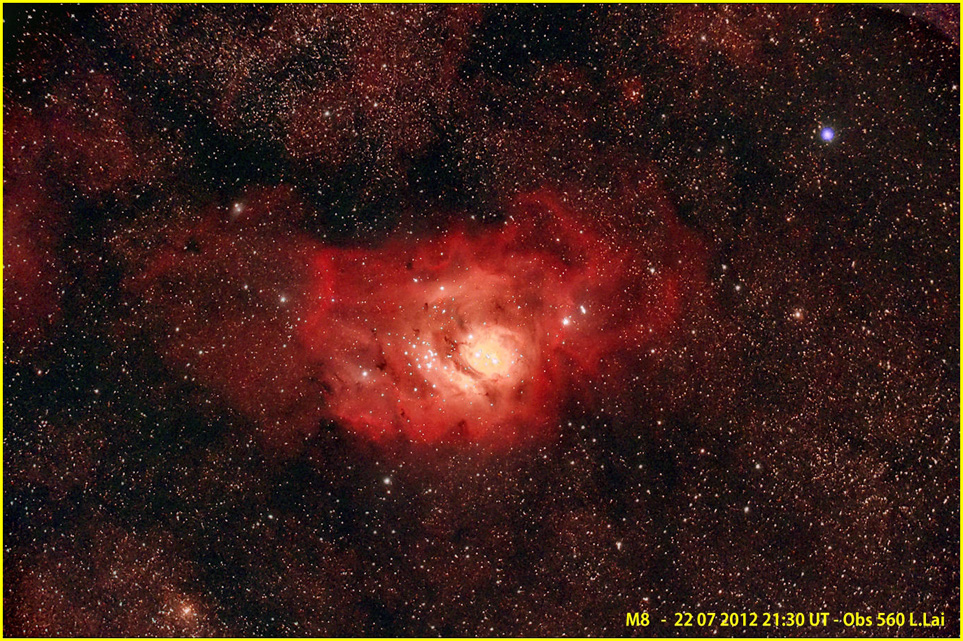 Quando il meteo è in movimento certamente l’atmosfera non sarà tranquilla, ma ci possono essere dei momenti in cui la trasparenza si ottimizza per le corrnti fredde e asciutte, proprio in uno di questi sprazzi , durato solo un paio di ore, ho ripreso M8 dal mio sito di città della pianura.