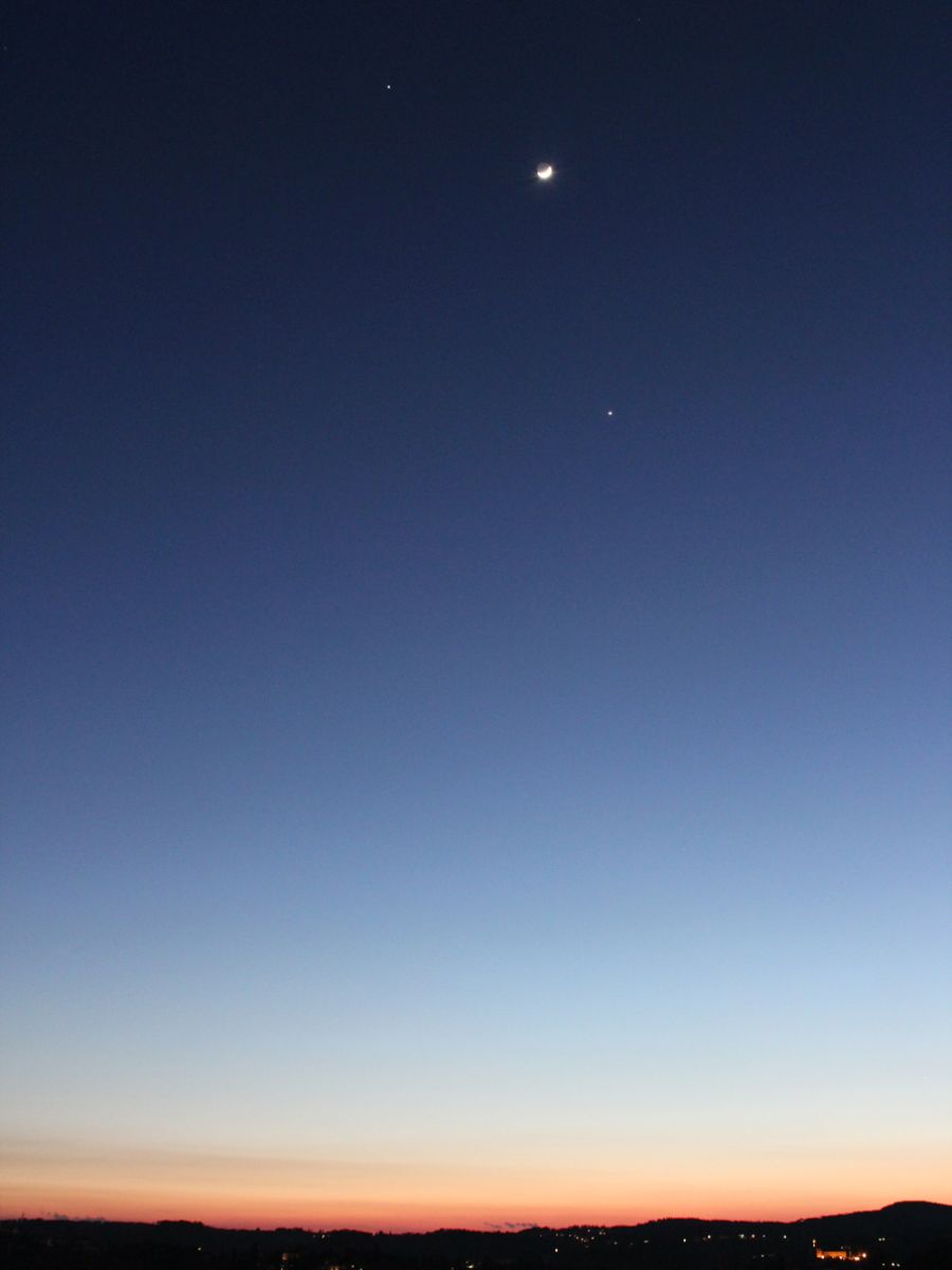 La bella congiunzione astrale ripresa con la mia Canon EOS 600D, con il semplice obiettivo 18/55. ed una posa di 1/2 sec a ISO 1600, F/5,6. Il cielo era ottimo.