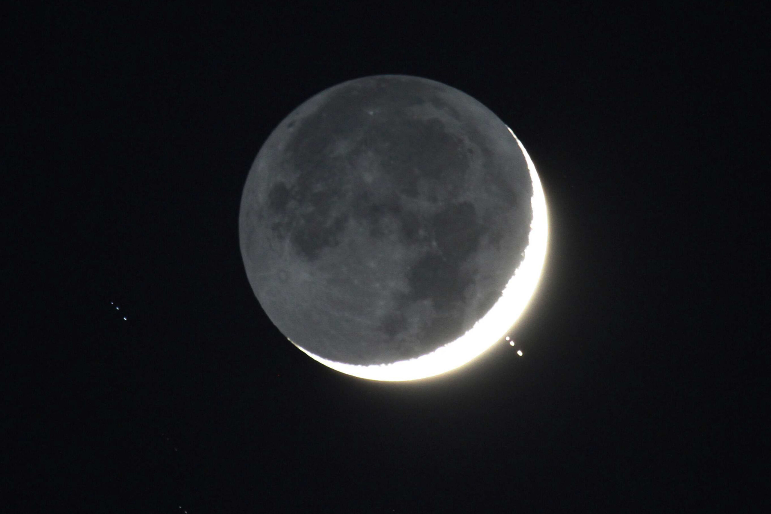 L’uscita di Aldebaran dopo l’occultazione da parte della Luna (purtroppo l’ingresso è avvenuto a un ora in cui la luce del Sole era troppo forte e quindi quasi impossibile da riprendere). Fenomeno avvenuto la sera del 28 aprile 2017. Fotocamera Canon EOS 7D, teleobiettivo SIGMA 150-500, f/6,3, esposizione da ½ secondo per la prima foto, a 1,3 secondi per le altre due, ISO 800, distanza focale mm 500. L’immagine è la somma di tre foto, utilizzando il software Startrails e elaborazione con Photoshop.