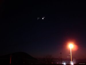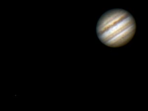 Giove con i satelliti Io, Ganimede e Callisto. Sovrapposizione di N°2 riprese da 30 sec. a 15fps. la prima per Giove, la seconda per i satelliti.