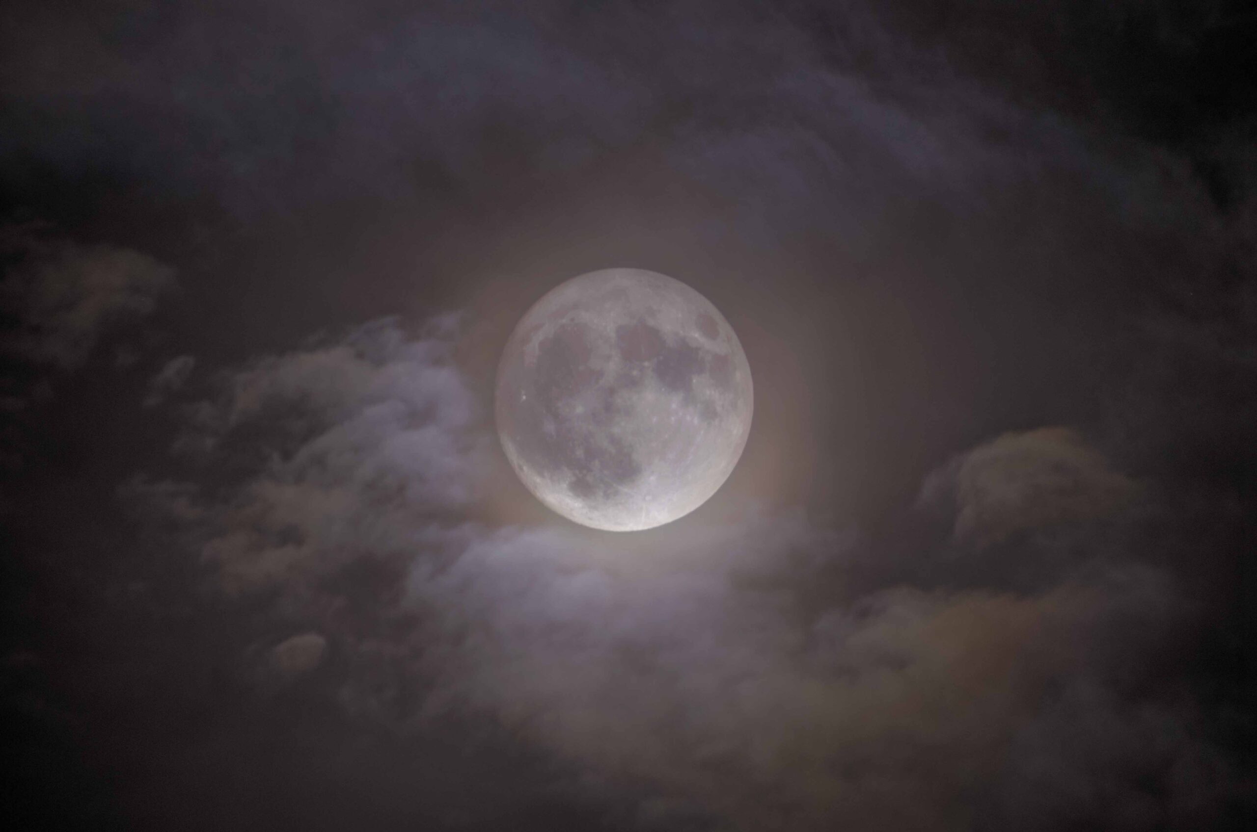 Elaborazione di doppia esposizione con tempi e sensibilità diverse per luna e nuvole.