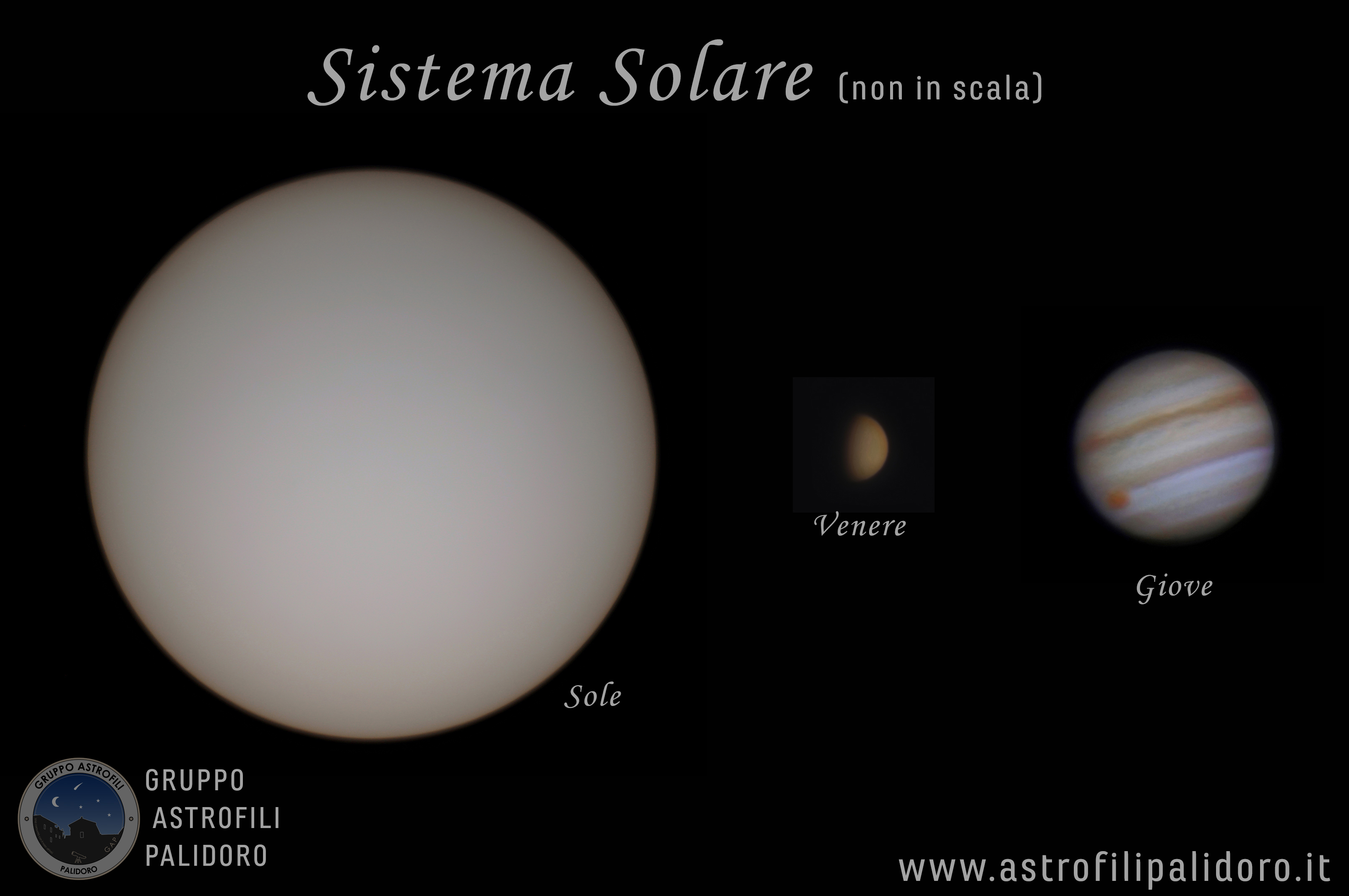 Una parte del Sistema Solare immortalato dal Gruppo Astrofili Palidoro. I pianeti con il Sole non sono in scala.