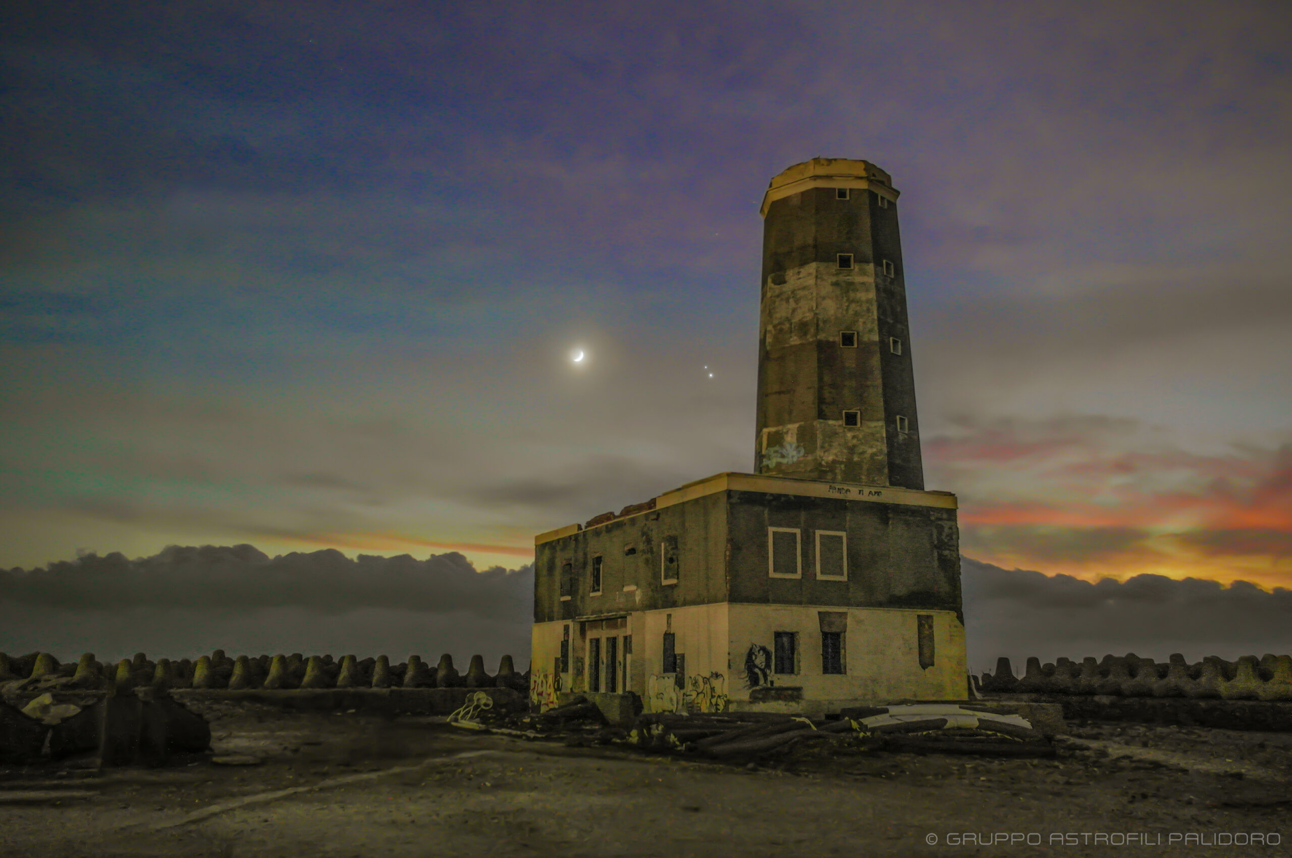 ℹ Questa sera (17 dicembre) ci siamo recati al #vecchiofaro di Fiumicino, un luogo di enorme suggestione dove abbiamo immortalato la grande congiunzione #Giove-#Saturno con falce di #Luna! ℹ