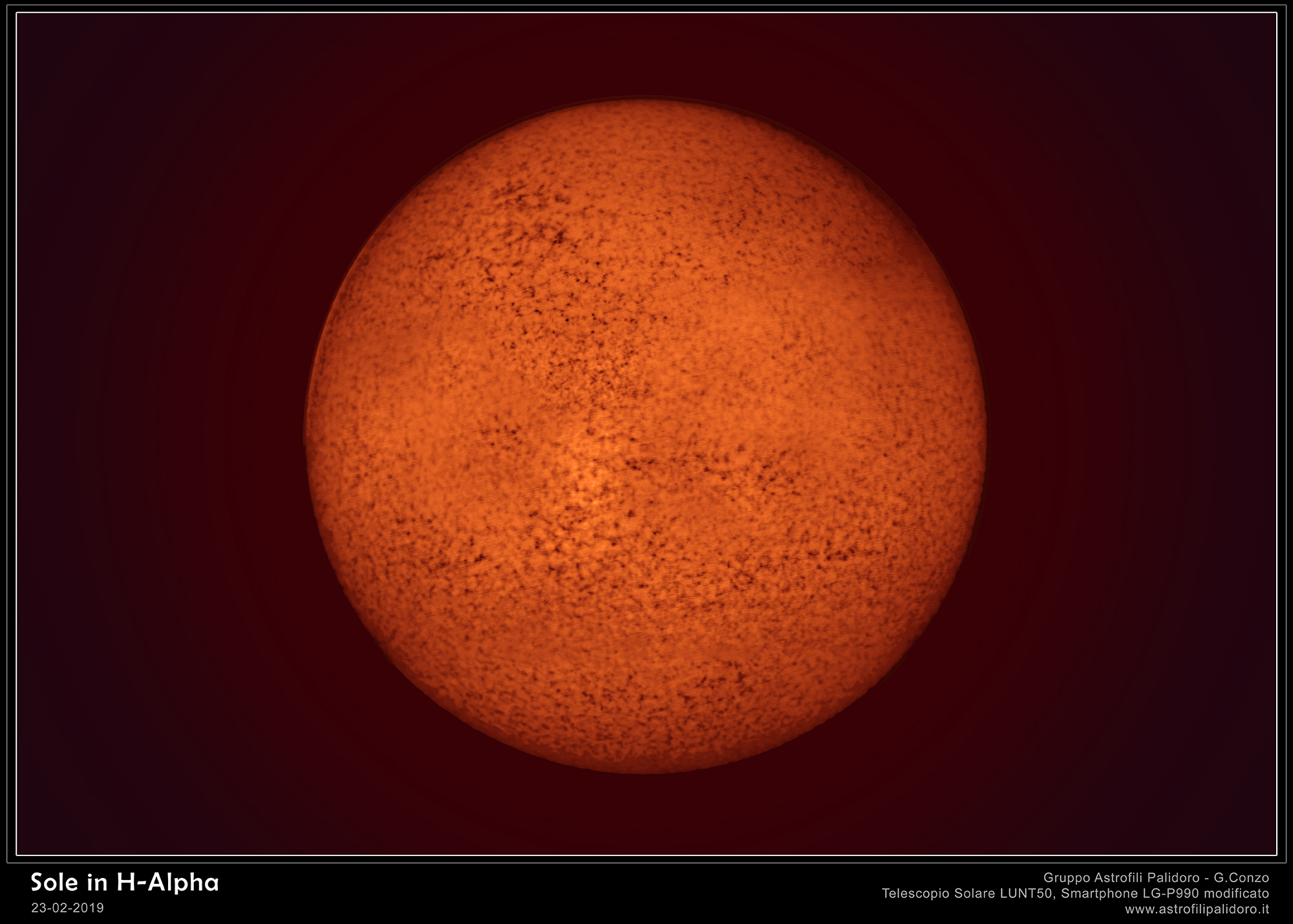 Riprese effettuate con telescopio solare LUNT50 e Smartphone LG-P990 modificato su montatura AZGTi motorizzata. Un lavoro di Giuseppe Conzo del Gruppo Astrofili Palidoro