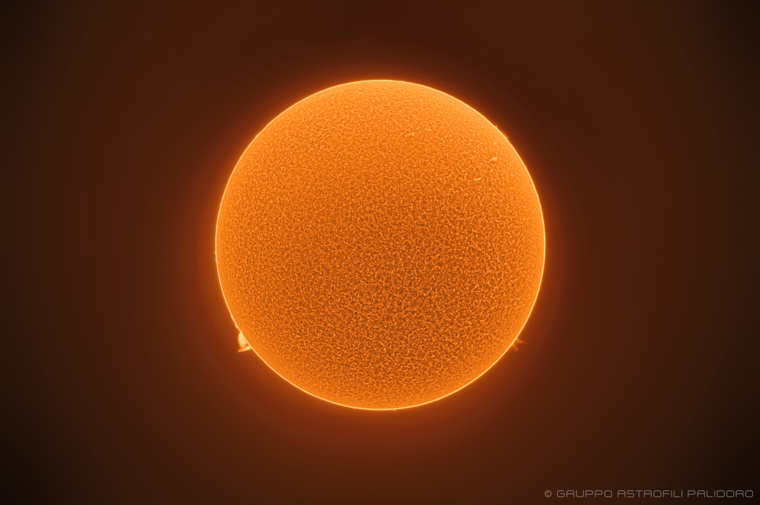 Riprese effettuate da Giuseppe Conzo con telescopio LUNT50 e camera ASI-178MC. Elaborazione ottenuta con un video composto da 6127 frames.