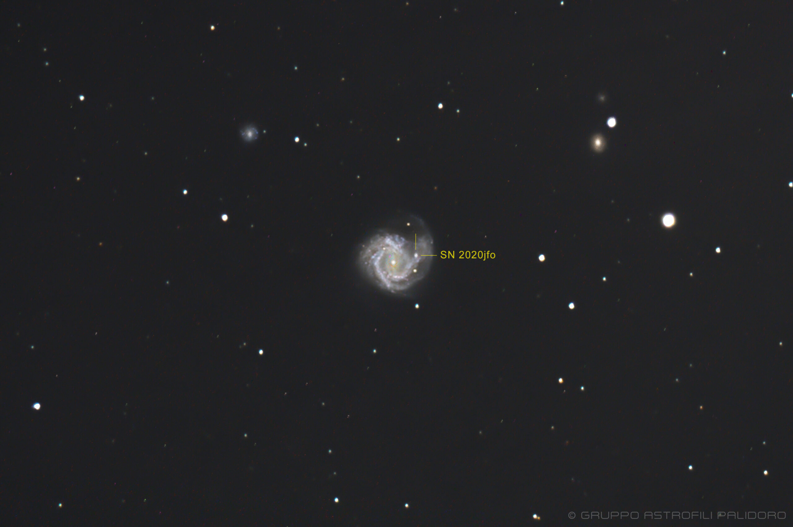 ✅ Ecco il risultato della sessione fotografica del 25 maggio 2020. Il Gruppo Astrofili Palidoro ha documentato Supernova 2020jfo indicata dal nome e dagli indicatori in giallo.