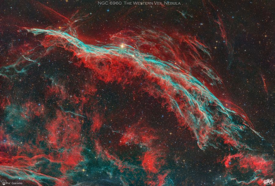 Questa immagine è centrata sul segmento occidentale della Nebulosa Velo catalogata come NGC 6960, ma meno formalmente conosciuta come Nebulosa Scopa della Strega.