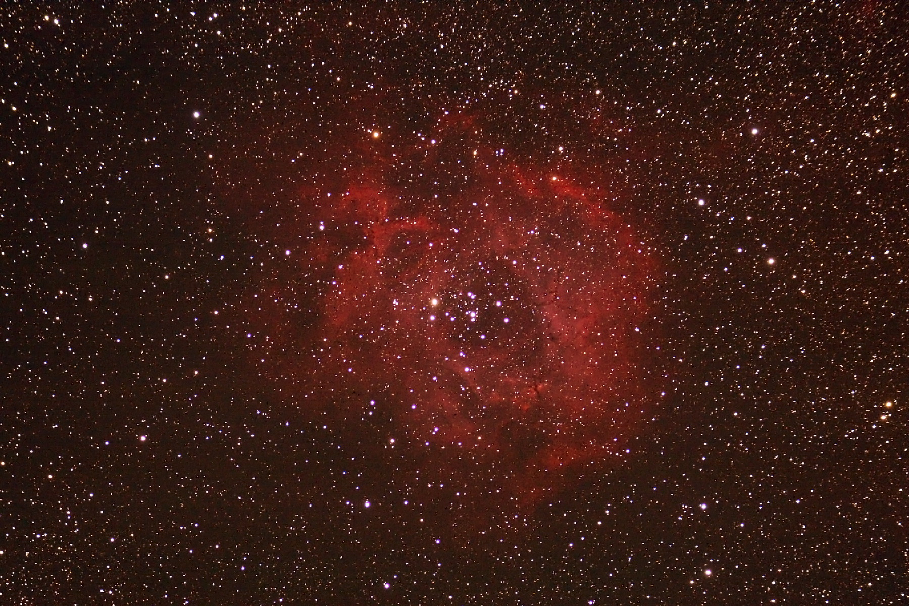 regione H II nella costellazione dell’Unicorno. La forma rozzamente circolare ricorda una rosa sbocciata e, come è abbastanza ben visibile in questa ripresa, essa è solo la parte più evidente di una gigante regione molecolare.