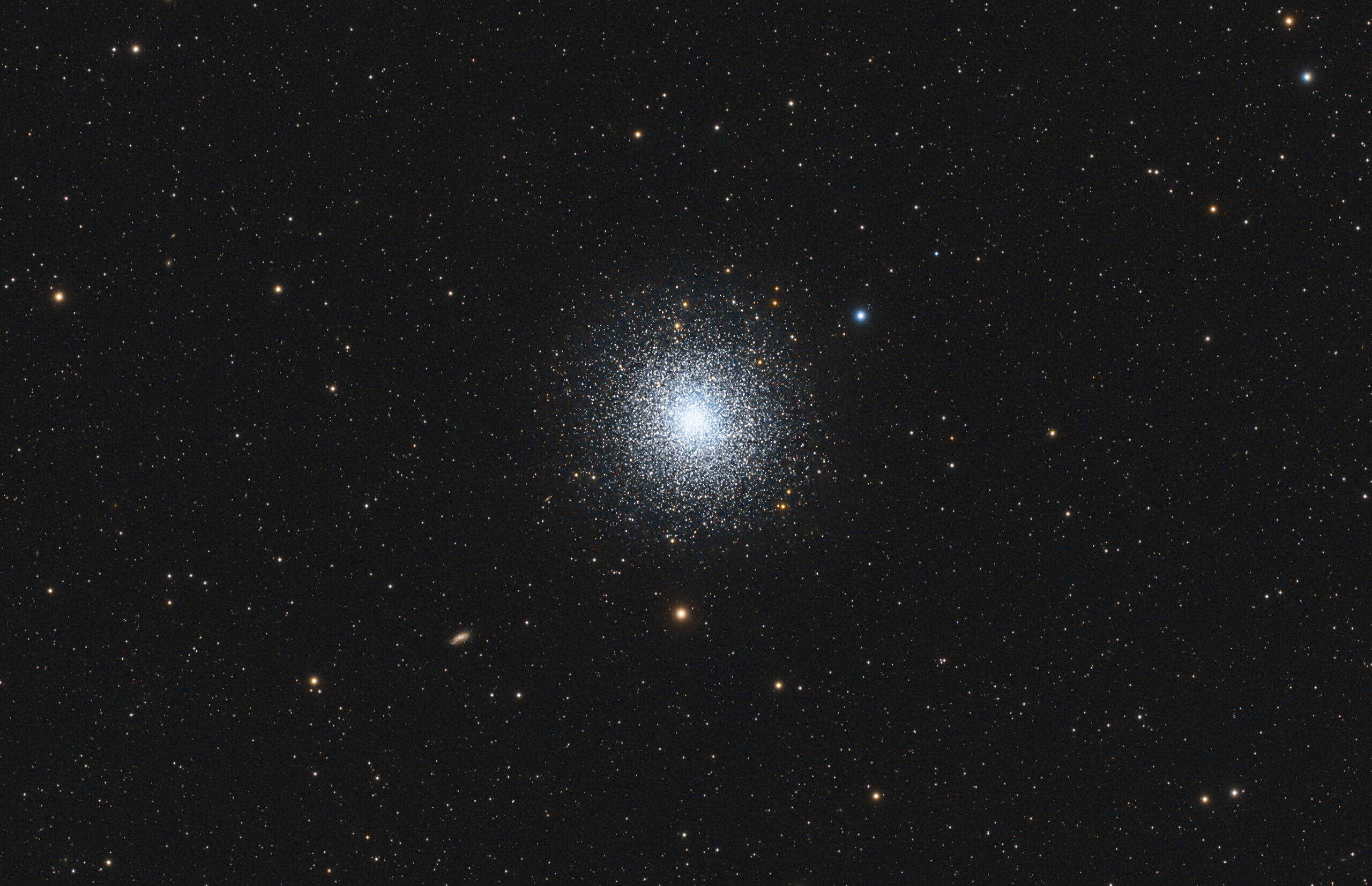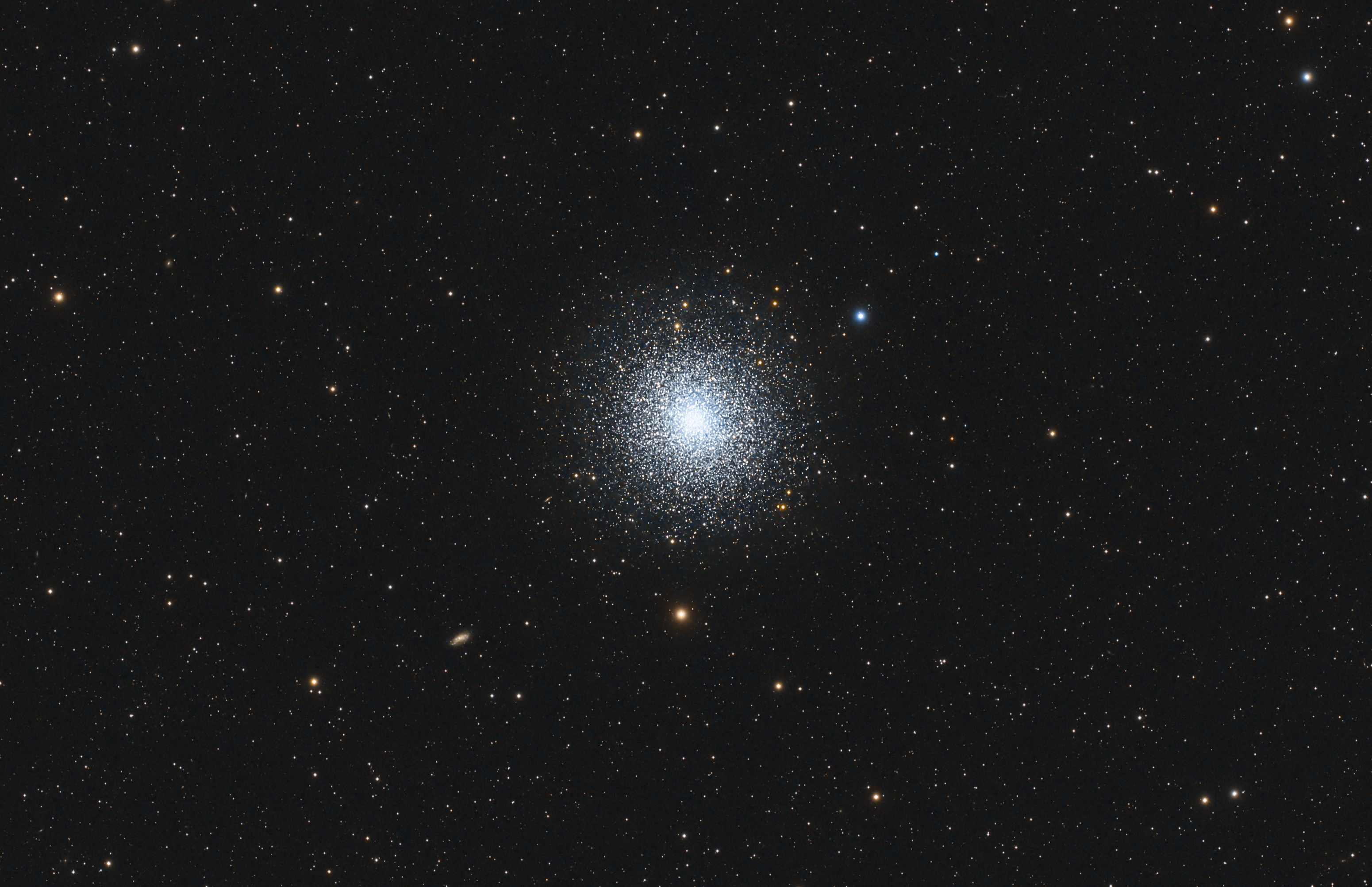 Dopo avere fotografato lo scorso anno M22 non potevo mancare il principe degli ammassi, M13, affascinante per ampiezza e ricchezza stelle. Nonostante la luminosità del soggetto avrei preferito provarci da un cielo buio per cercare di cogliere al meglio la decina di micro galassie presenti nel campo inquadrato ma il lockdown, dovuto alla pandemia del Covid 19, mi ha indotto a farlo da casa nonostante le condizioni non proprio ideali. Trattasi del crop di uno scatto a largo campo effettuato dal terrazzo di casa in periferia di Napoli a 530 mm di focale (https://www.astrobin.com/full/bogp0f/0/). Strumentazione utilizzata: