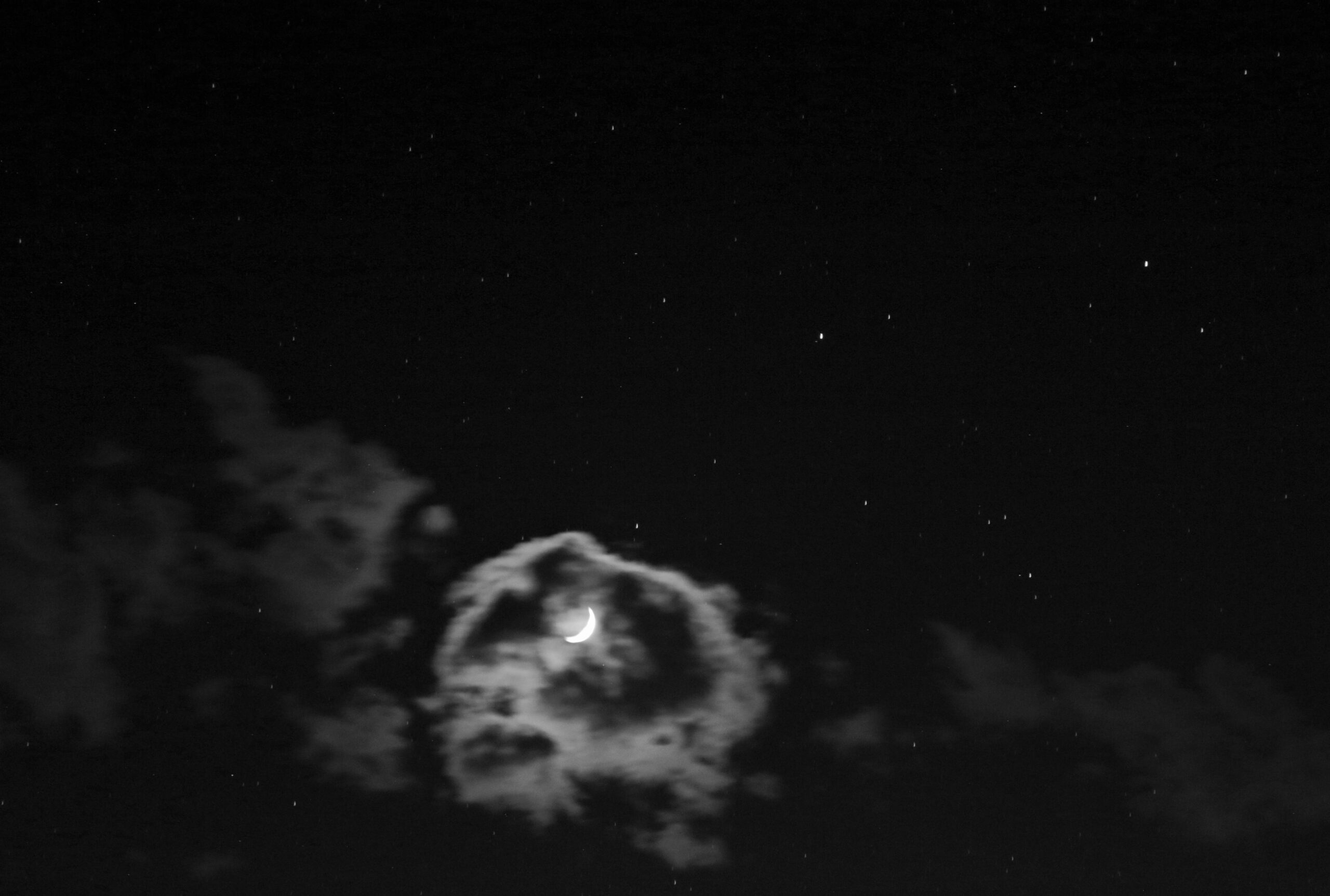 stravaganze del cielo, par di vedere la bella a sinistra e a destra la bestia, con luna come occhio, più in là Castore e Polluce.