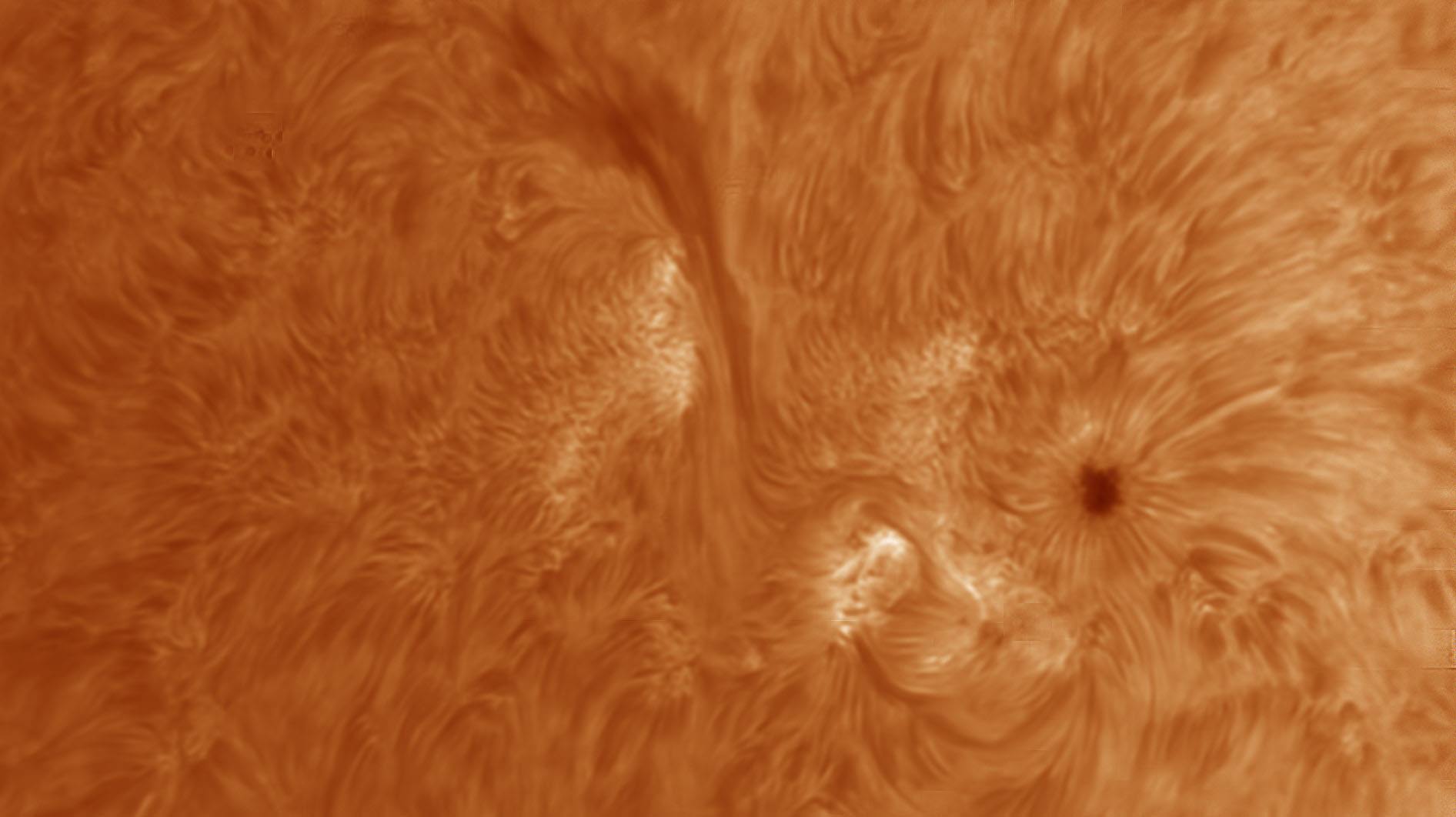 riprese della Macchia Solare con filamento e un piccolo arco denominato AR 2765. Telescopio usato 120 ED focale 900 skywatcher, Filtro Daystar Quark Cromosfera più filtro di rigetto astronomik 12nm, camera asi 290 mono.