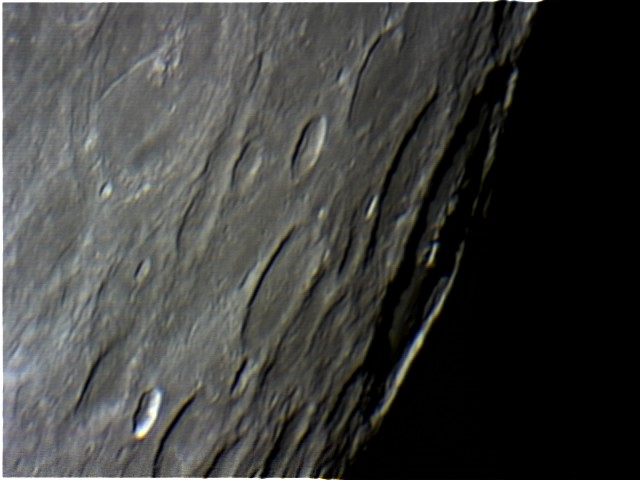 qusta immagine lo ripresa con un telescopo maksutov 150/1800. qui ho ripreso il cratere humbold sul bordo lunare.