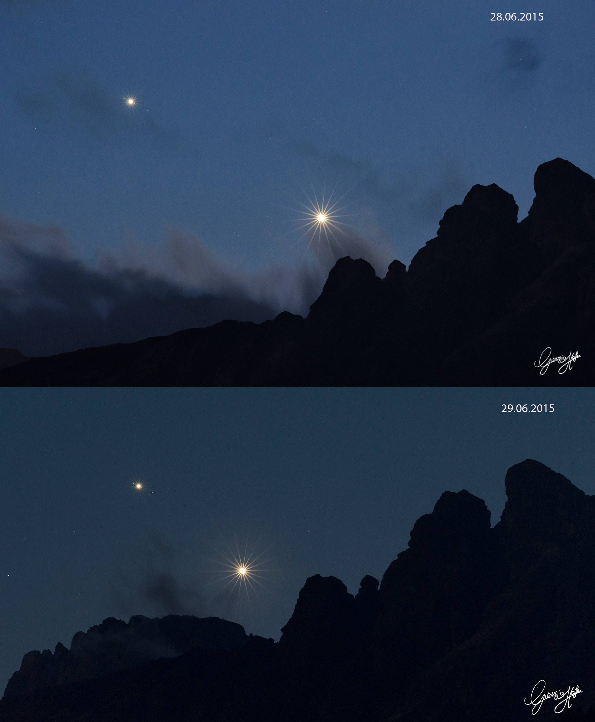 In attesa del massimo avvicinamento di questa sera tra i due pianeti, una sequenza del 28 e 29 giugno