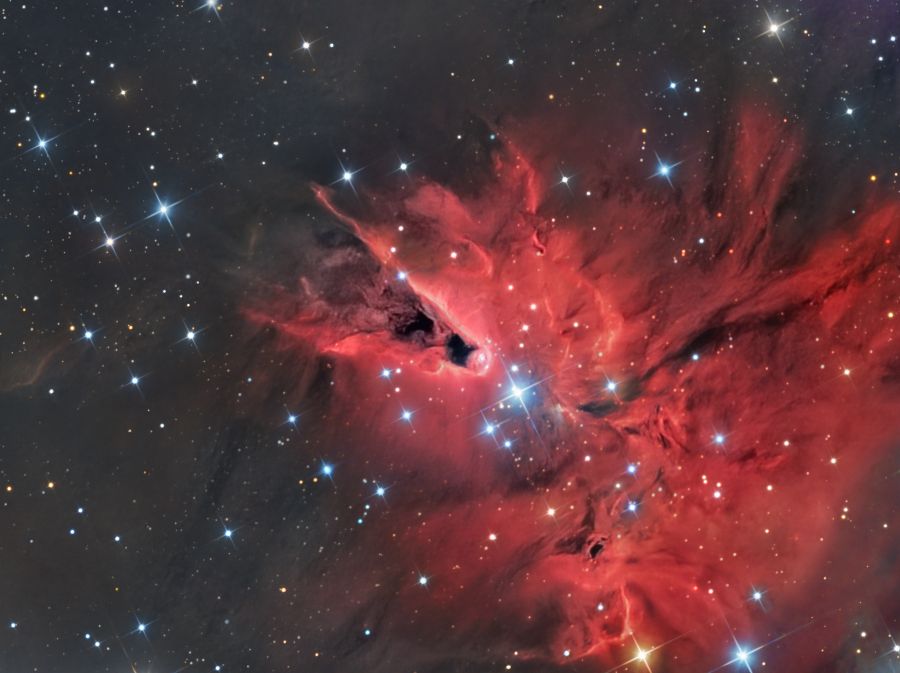 Un meraviglioso oggetto del cielo profondo nella costellazione dell’Unicorno, pilastro di gas e polvere di stelle in formazione. Enormi pilastri di gas freddo, come la Cono ed M16, sono strutture comuni in vaste regioni di nascita stellare.