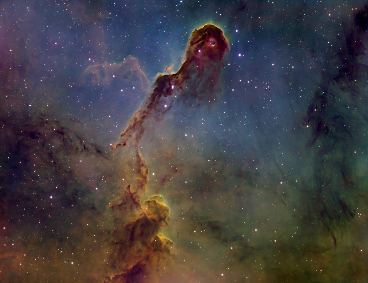 IC 1396 o Elephant Trunks sono 60×5 min Ha, 83×5 min OIII e 144×5 min SII, quindi 5 ore Halfa, 7 ore OIII e 12 ore in SII, per un totale di 24 ore!!! Immagini acquisite nelle notti del 23, 24, 25 e 26 Giugno