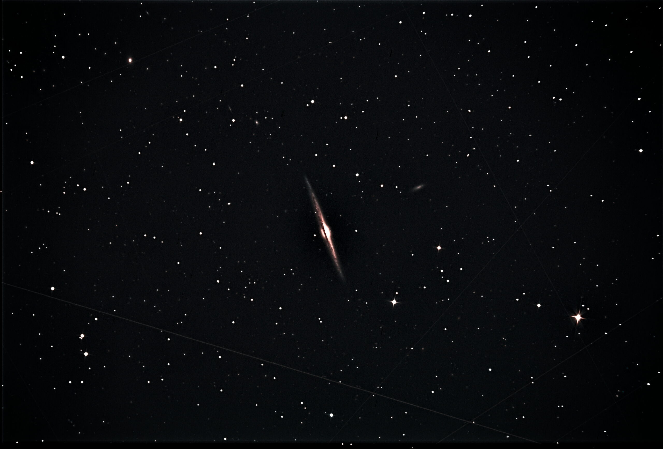 Si trova a sud-est della stella γ Comae Berenices; si presenta perfettamente di taglio, così appare come un lungo fuso. In telescopi da 200mm di apertura la vista è stupenda: per l’intera lunghezza della galassia è ben evidente una fascia oscura, in posizione leggermente asimmetrica rispetto al nucleo, che la rende straordinariamente simile alla nostra Galassia.