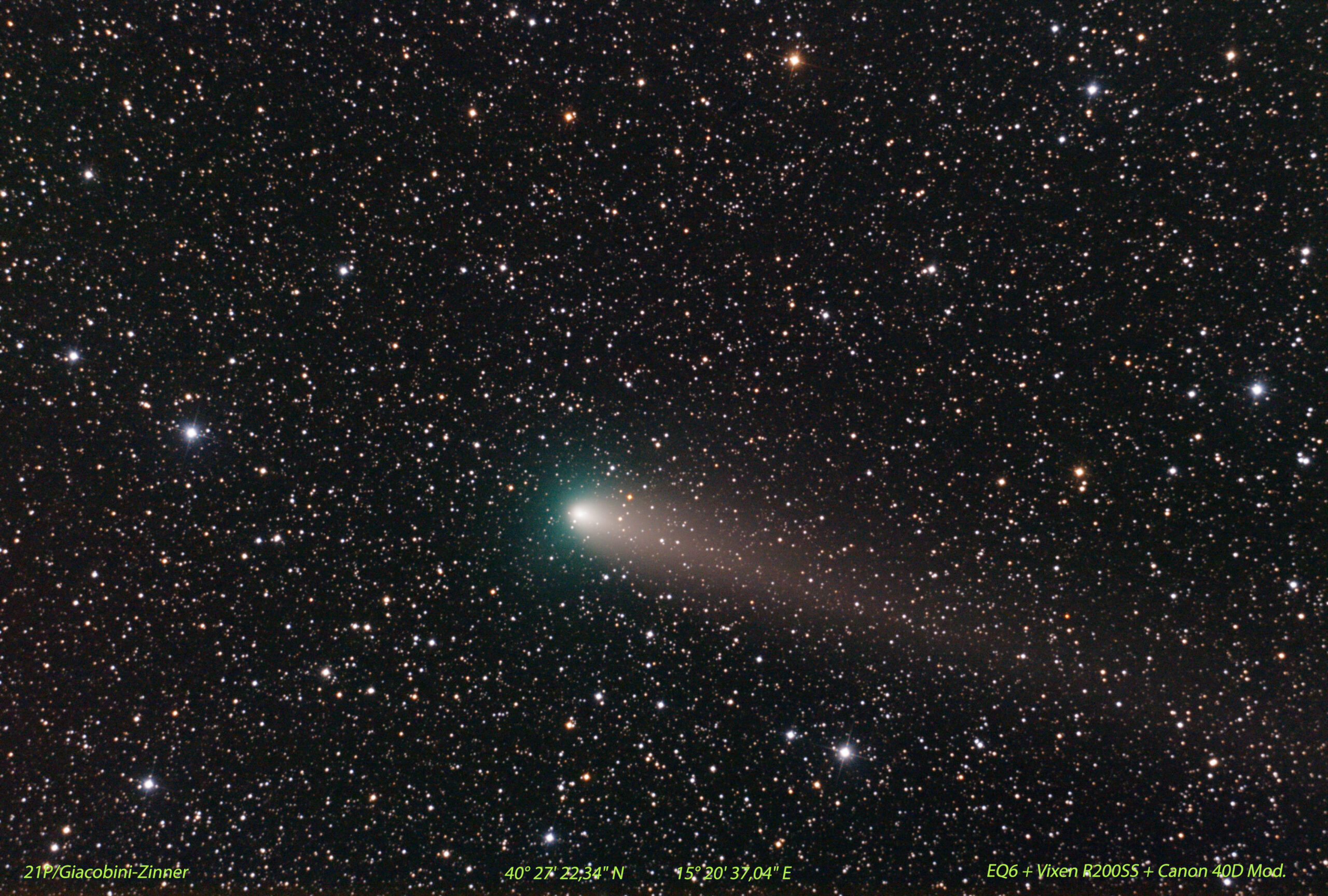 Il fascino di una cometa, ritratta nel periodo di max luminosità dell’oggetto. Dalla 03:15 alle 05:15 – 47 pose da 120s – Canon 40D modif. – Astrografo Vixen R200 SS f/4 – Montatura EQ6 Autoguidata – Elaborazione PixInsight.