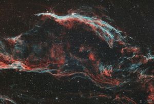 Questa nebulosa è una fucina di stelle: gli astri presenti al suo interno ionizzano i suoi gas donandone il tipico bagliore rosso. La stella più luminosa dell’immagine è ζ Persei una stella di classe B1 che ha una temperatura superficiale di circa sei volte maggiore di quella del nostro Sole.
