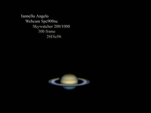 Saturno Ripreso il 26 12 06. La foto è frutto di una somma di 300 frame acquisiti a 5fps con k3ccd ed elaborati con registax e photoshop