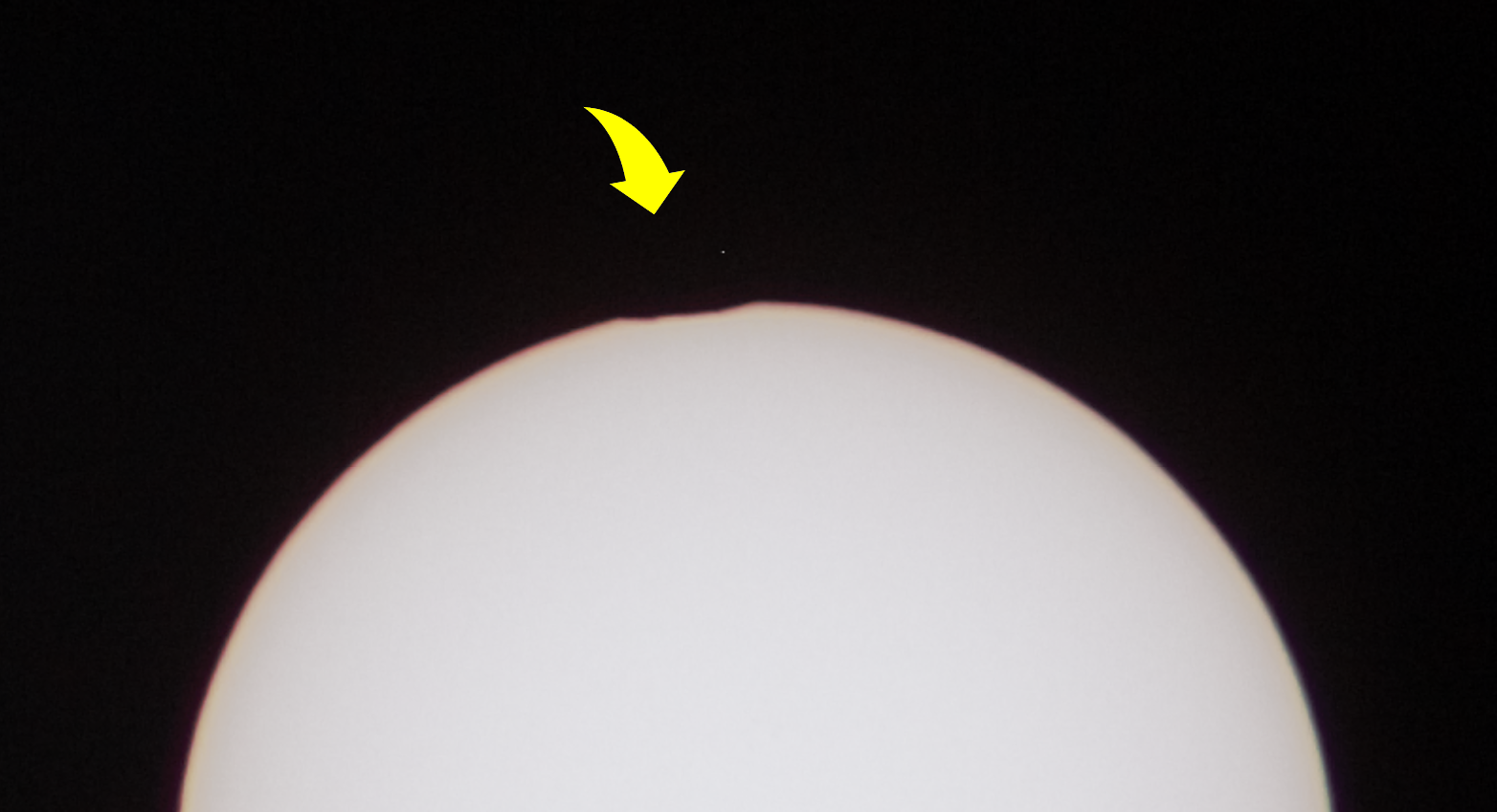 Eclissi Parziale di Sole catturata a Fabro (TR), la nostra latitudine è al confine della fascia di non osservabilità, per questo la Luna e quasi impercettibile sulla superficie della nostra stella.