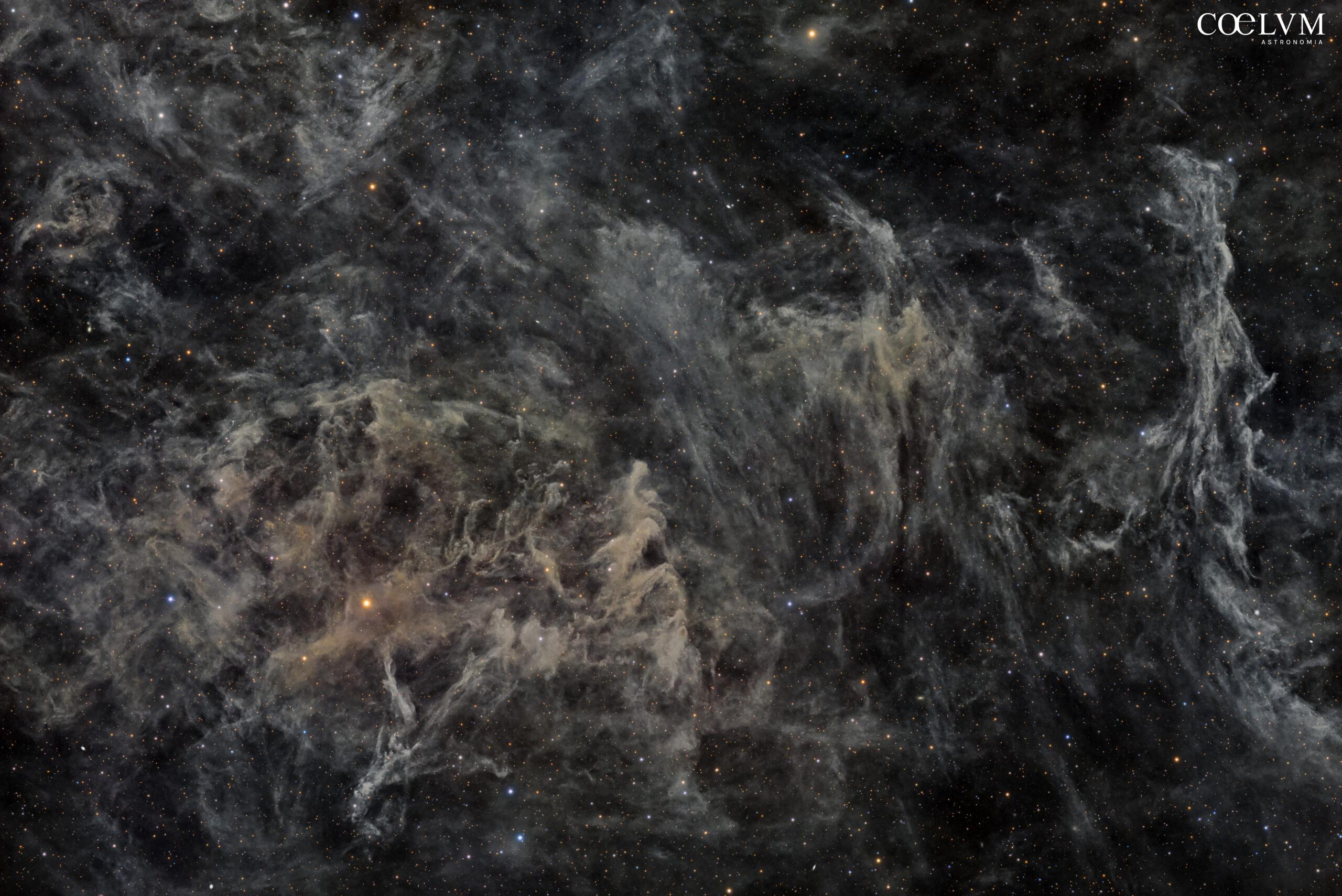 In questa immagine si possono ammirare morbidi intrecci e fini trame di nubi molecolari, polveri e nebulose oscure nella costellazione del Cefeo a soli 9° dalla stella Polare, tra le quali una delle principali è catalogata come LBN569: fanno parte di un più grande complesso di polveri e nubi oscure conosciuto come IFN (Integrated Flux Nebulae). Sono oggetti molto deboli e per questo sono andato ad acquisire da cieli bui, e ho totalizzato 2 nottate complete sulle Alpi austriache ed italiane. Tecnosky Owl Pro 110 F4,8 (526 mm) Zwo Asi 2600 Duo Mc Proxisky Umi20S Zwo AsiAir Plus set 2025 senza filtro: 151X300” Tot: 12h 35’ 18/09/2025: Schonfeld (Austria) – 1702 m. (Sqm 21.25) 19/09/2025: Stalle (Italy) – 2080 m. (Sqm 21.2)