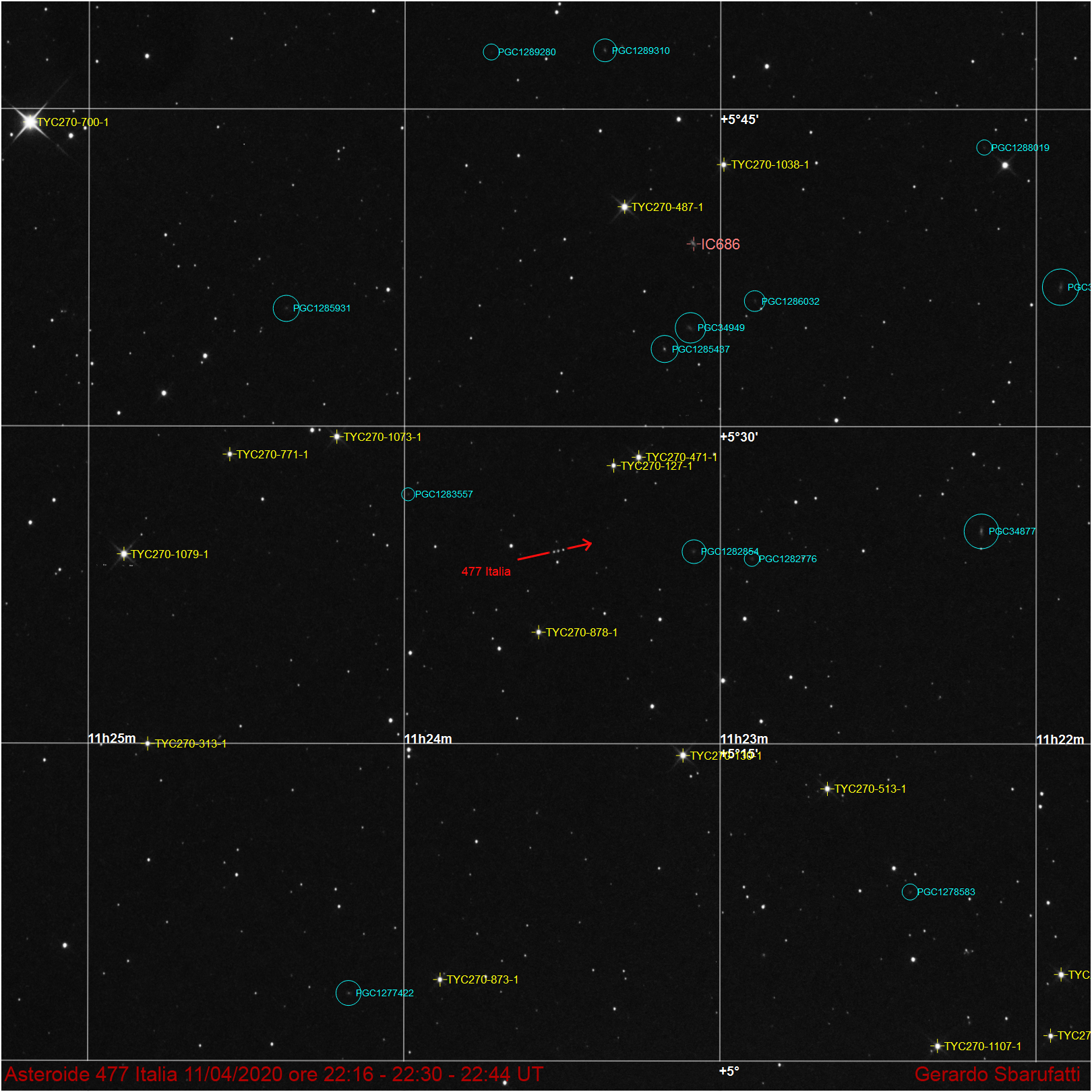 Ho colto l’invito della redazione ed ho ripreso l’asteroide (477) Italia mentre transitava nella costellazione del Leone.