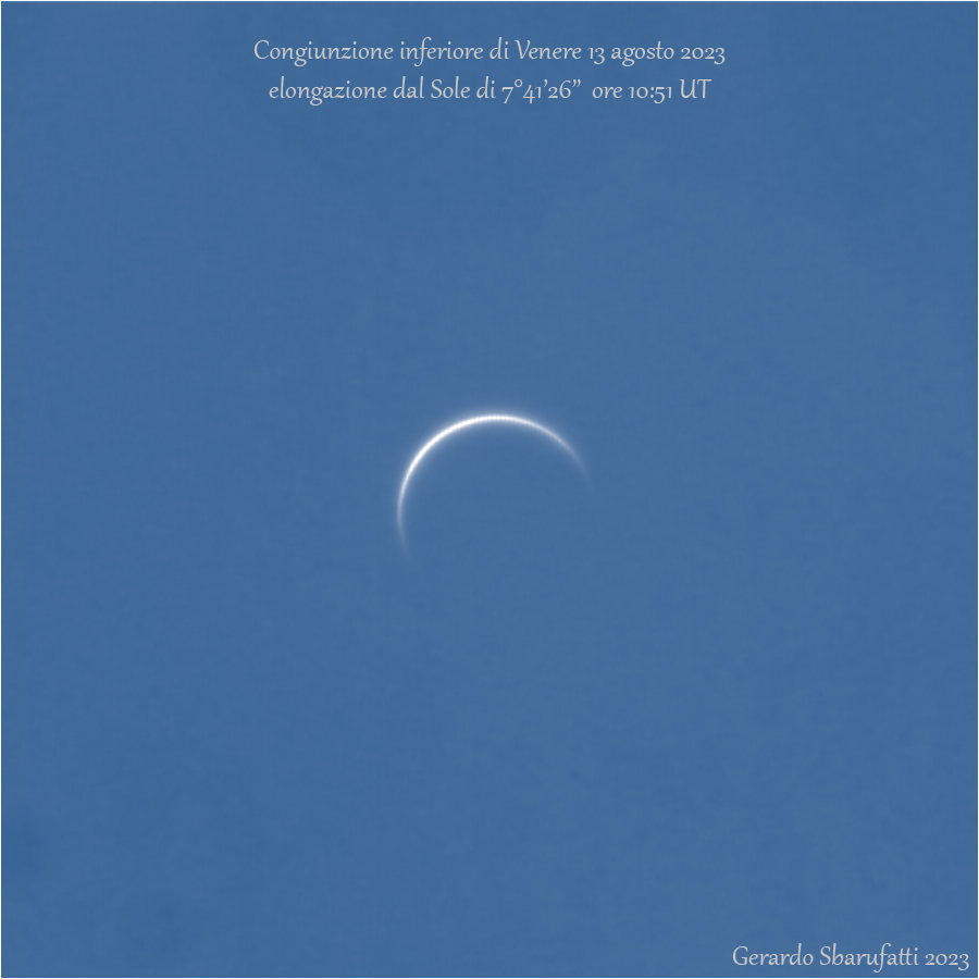 Ripresa di Venere a pochi gradi dal Sole (7°41′) ma osservabile ancora in tutta sicurezza. Il cielo bianco per l’altissima umidità e la notevole turbolenza diurna non hanno aiutato la ripresa.