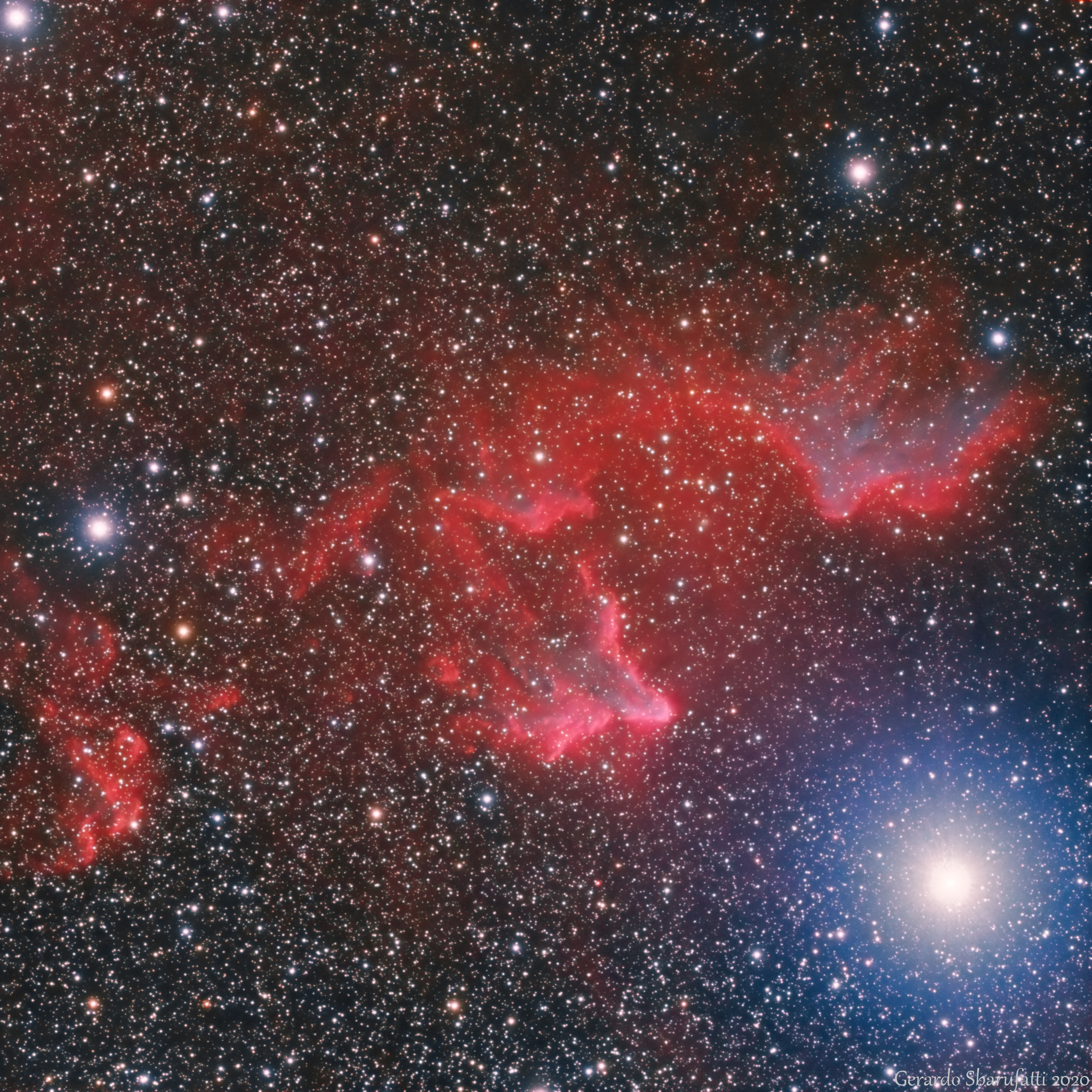 Catalogate anche come Sharpless 2-185 (Sh2-185) sono nebulose rosse formate da gas ionizzato e da polveri che brillano per riflessione della luce azzurra della stella γ Cassiopeiae.