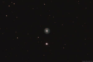 Sh2-101 chiamata anche Nebulosa Tulipano nella costellazione del Cigno. Campo ricco di stelle e gas ionizzato dalla radiazione ultravioletta della giovane stella al centro della nebulosa HD 227018. Vicino anche la radiosorgente Cygnus X-1 ( la stella arancione in coppia con una azzurra al centro-destra dell’immagine ), un buco nero di circa 15 masse solari che ruota attorna a una stella compagna di grande massa.