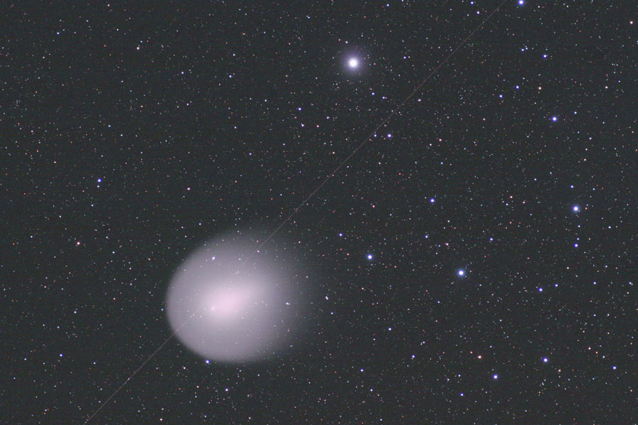 Satellite artificiale che attraversa cometa 17/P Holmes. Cometa 17/P Holmes nei pressi di Mirphak rifrattore Pentax Sduf II Canon 20D modificata 120″