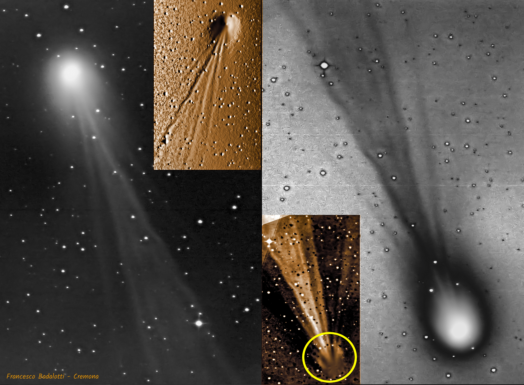 Prosegue il monitoraggio della cometa 12P/Pons-Brooks con queste immagini acquisite in data 18/03/2024 alle ore 20:20UTC col telescopio a controllo remoto PW-CDK 20" 508mm F6,8 situato presso l’Osservatorio Astronomico delle Isole Canarie (Piattaforma "SLOOH"). Anche in questo caso l’elaborazione delle immagini è stata finalizzata ad evidenziare, per quanto possibile) la struttura di una parte della coda e la probabile eventuale attività intorno al nucleo cometario con l’ausilio del filtro Larson-Sekanina. Elaborazione immagini con MaxIm, Camera Raw, Photoshop, Fitswork.