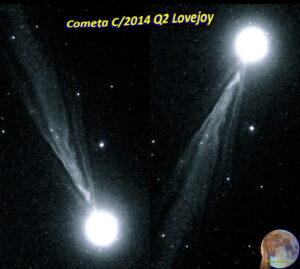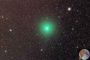 Cometa C/2023 A3 Tsuchinshan-Atlas. Immagine del 14/10/2024 19:40 UTC. Telescopio remoto C11 RASA 280mm F2,2. (Isole Canarie, rete di telescopi remoti “Slooh”). Magnitudine 1,18. Altezza +10°24′. Risultato della somma di varie elaborazioni.