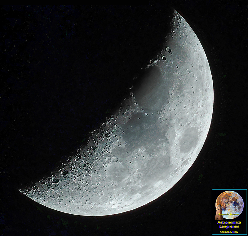 Luna in fase di 6,2 giorni ripresa il 23 marzo 2018 su cavalletto senza telescopio con fotocamera digitale compatta Nikon Coolpix B500, zoom ottico 40x + DFZ 4x (focali da 22,5 a 914mm sul formato 35mm). Focale di acquisizione 2000mm, F6.5, 17160 sec, ISO 200, DFZ 2.2x.