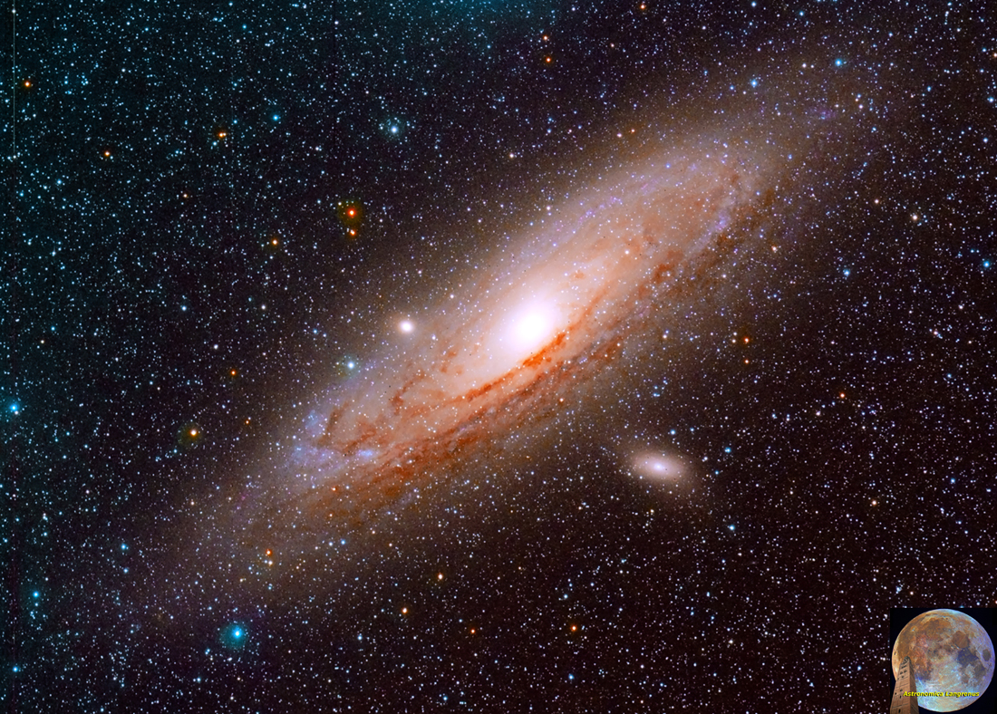 M31 Galassia di Andromeda. Acquisizione da Cremona con telescopio remoto presso Osservatorio Astronomico di MayHill (New Mexico, USA). Astrografo Apo 106mm F5. RGB 3 pose x 300" binning 2, no luminanza. Elaborazione MaxIm, Photoshop, HDR.