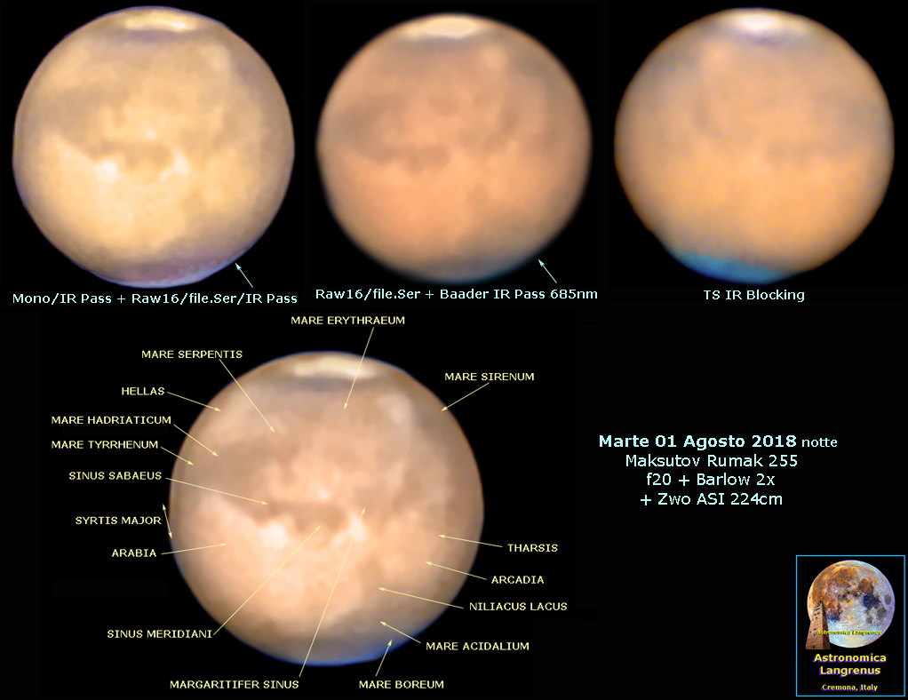 Ultime rielaborazioni delle immagini di MARTE acquisite la notte del 01 Agosto 2018 per cercare di spremere qualcosa di meglio visto che la tempesta di sabbia ormai ridotta di intensità lascia intravedere abbastanza facilmente almeno le principali strutture superficiali del pianeta.