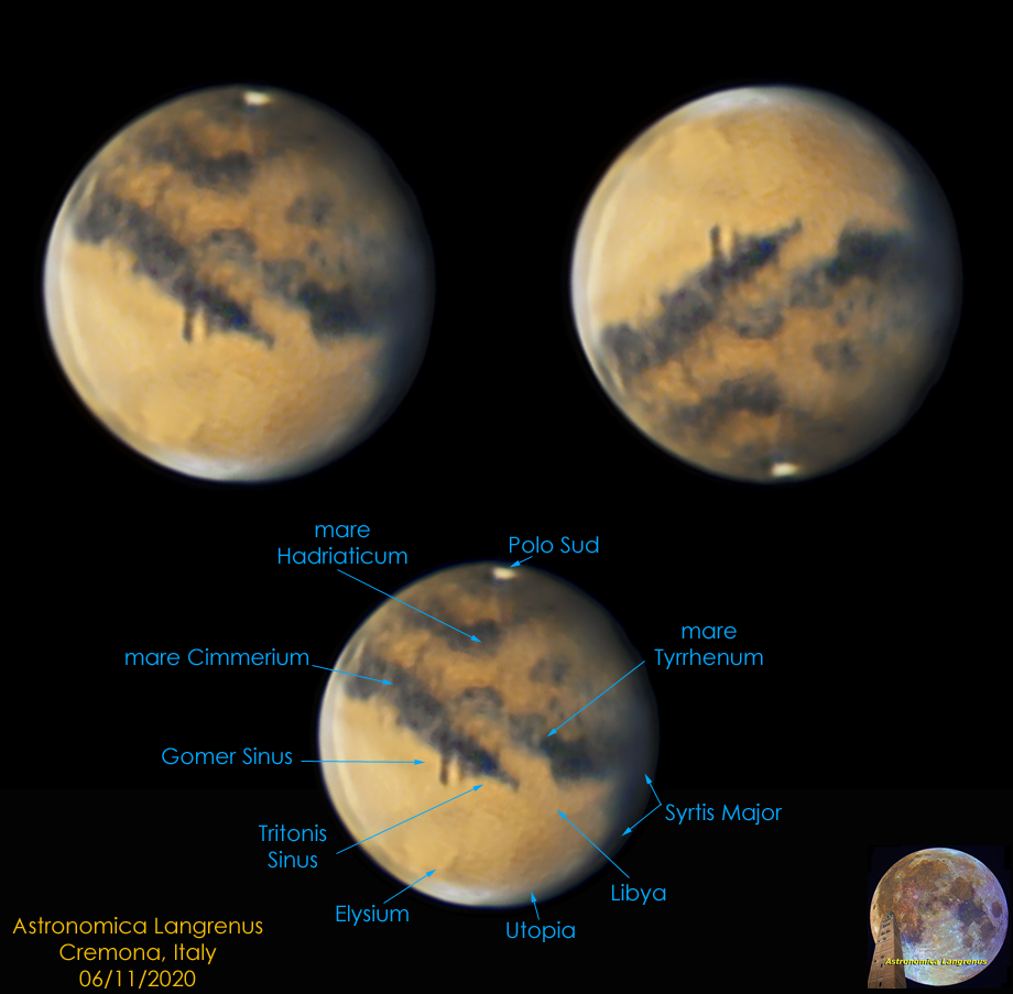 Pianeta Marte il 06 Novembre 2020 – Telescopio Maksutov Rumak 255mm F20 + Barlow 2x + filtro IR Blocking + Zwo ASI 224MC. Software di acquisizione Firecapture. Media di 1000/3600 frames a 30 fps. Elaborazione Autostakkert, Fitswork, Piccure, Camera Raw.
