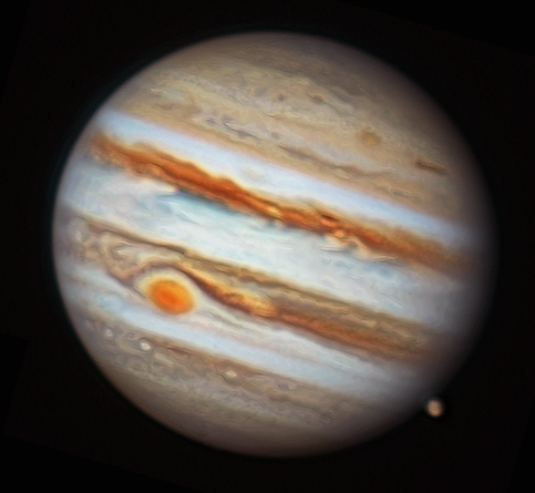 Pianeta Giove col satellite Ganimede