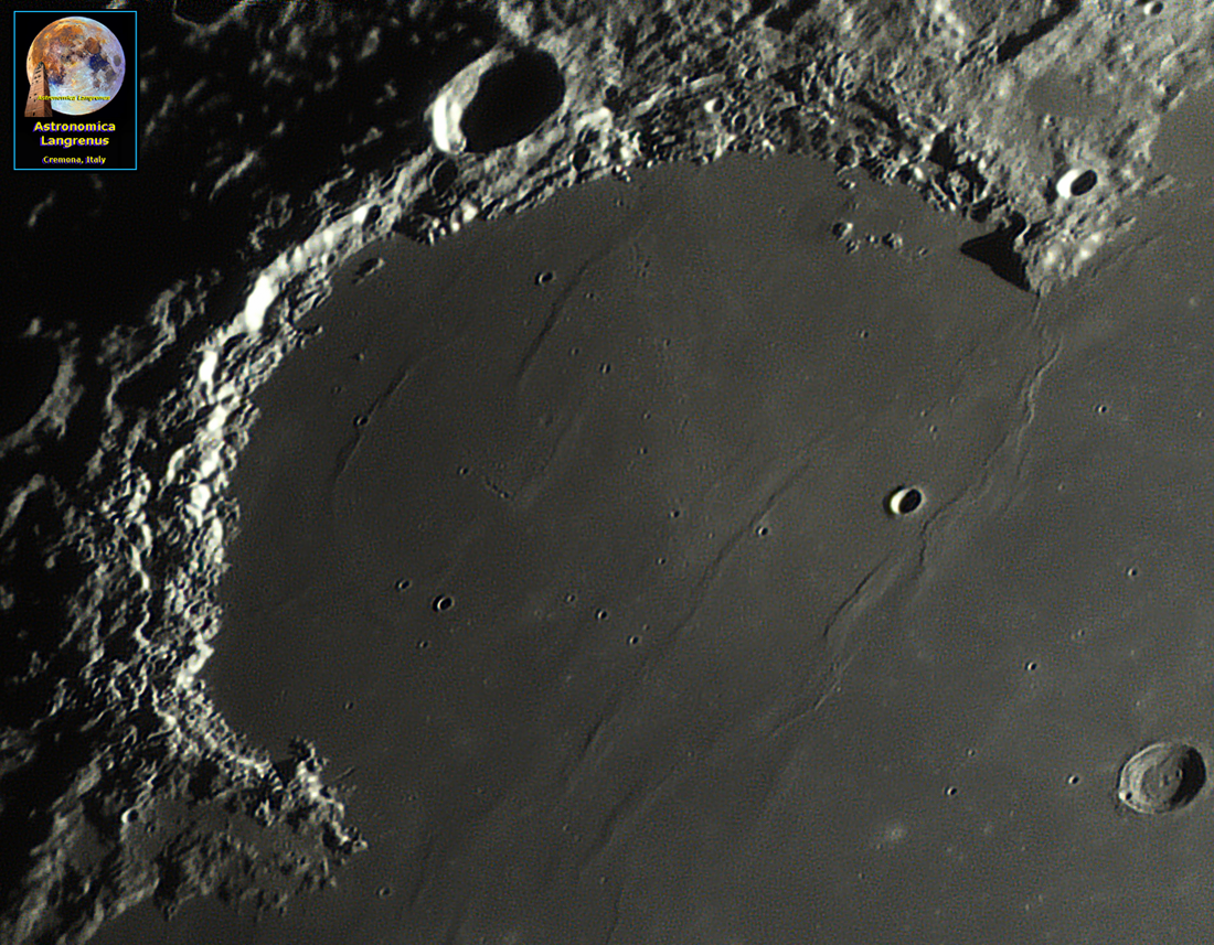 15 Febbraio 2019 – Settore nordovest del mare Imbrium col grande arco del Sinus IRIDUM. Telescopio Mak Rumak 255mm F20 (5000mm) + ZWO ASI 224mc + filtro IR Blocking, acquisizione con software ASICAP Capture a 27 fps (Raw 8), media di 800/2350 frames totali.