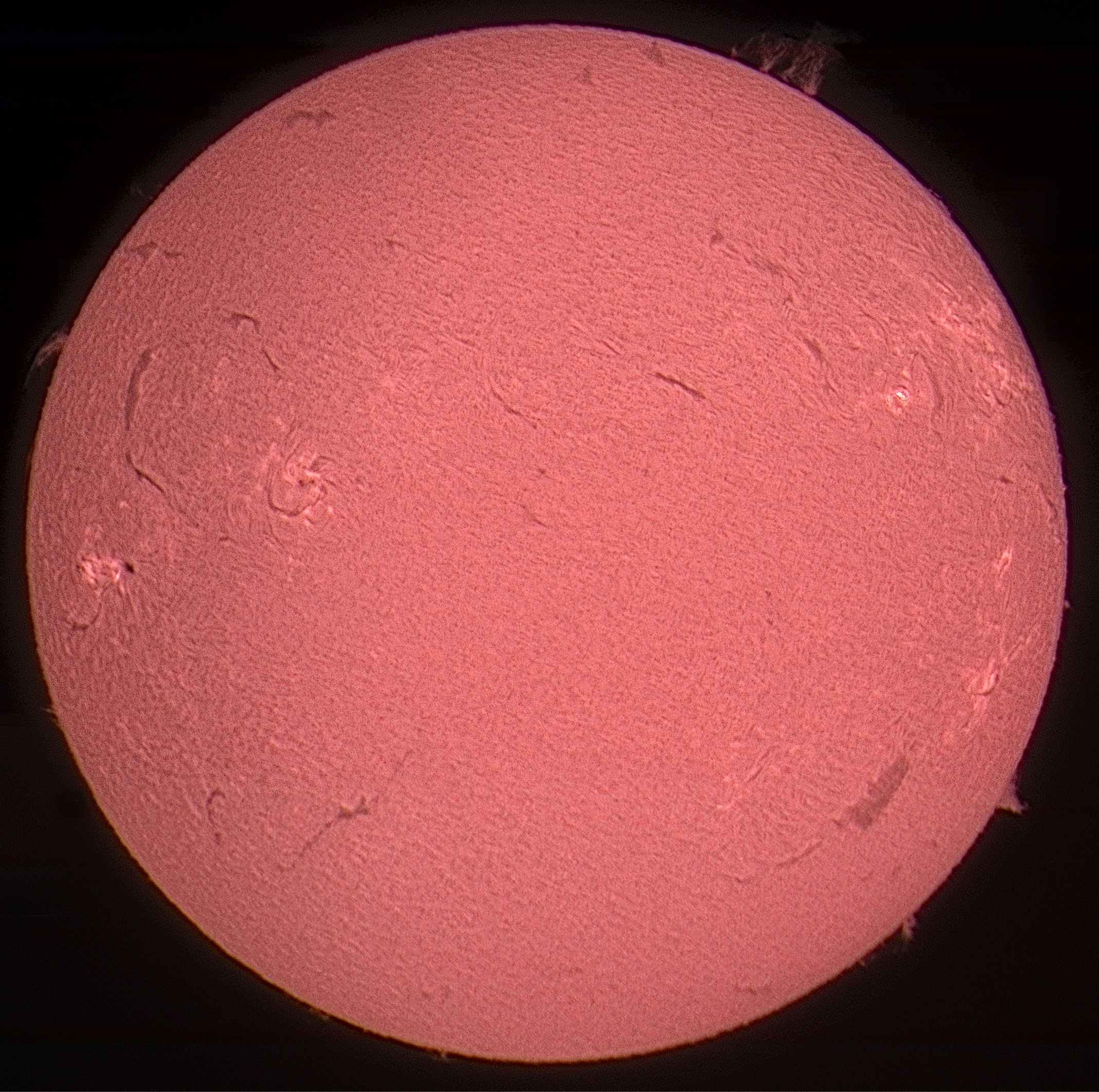 Sole ripreso nella riga Halfa tramite telescopio solare Acuter Phoenix 40 elite. Camera planetaria SVbony Sc715C. Acquisizione e stacking effettuata tramite shrpcap pro. Post con CaptureOne